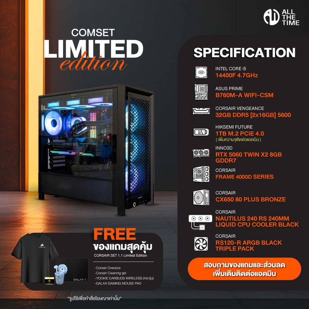 Corsair Set 1.1 คอมประกอบ INTEL I5 - 14400F/RTX 5060 8GB/B760M/32GB DDR5 5600MHz (CSMCS-01)