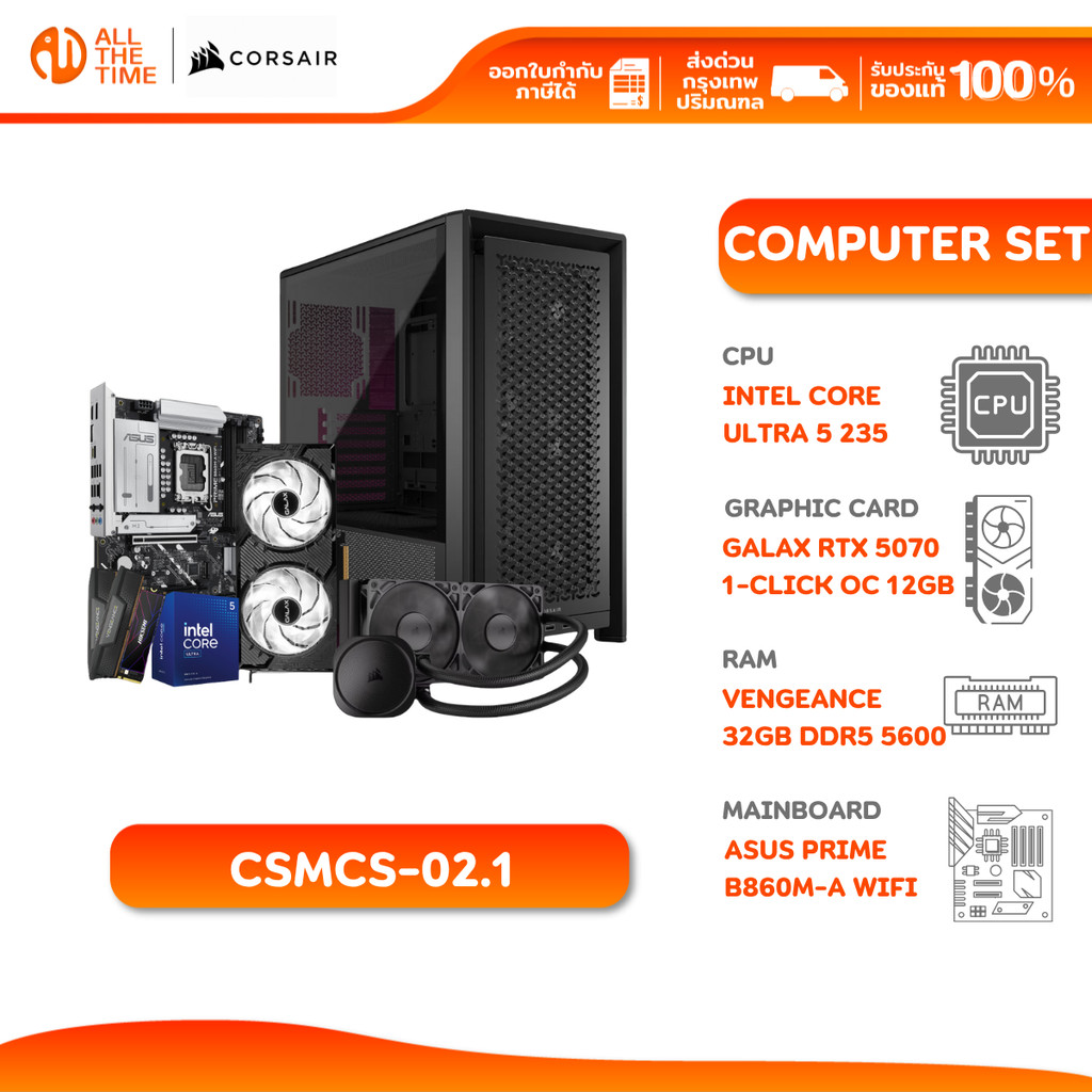 Corsair Set 2.1 คอมประกอบ INTEL CORE ULTRA 5 235/RTX 5070 12GB/B860M/32GB DDR5 5600MHz (CSMCS-02)