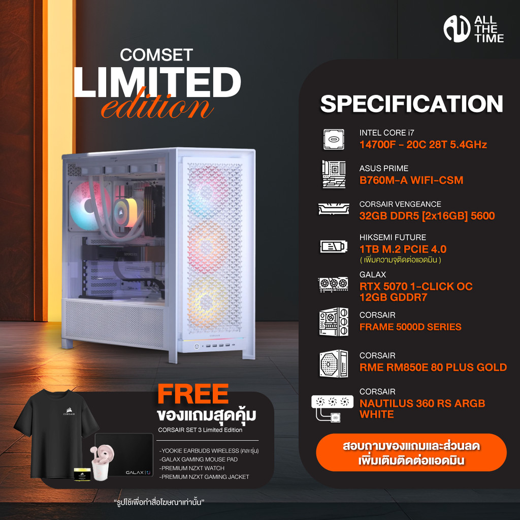 Corsair Set 3 คอมประกอบ INTEL CORE I7 - 14700F/RTX 5070 12GB/B760M/32GB DDR5 5600MHz (CSMCS-03)