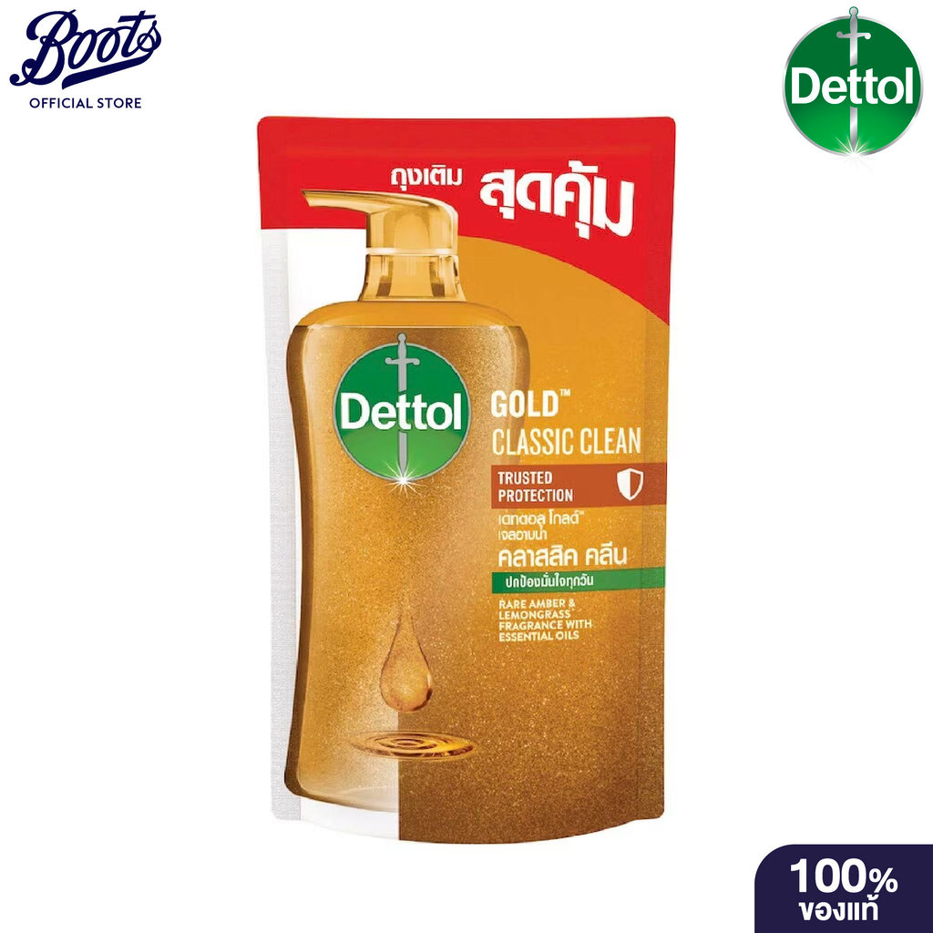 Dettol Gold Shower Gel Classic Clean 400 g เดทตอล โกลด์ เจลอาบน้ำ ชนิดเติม สูตรคลาสสิค คลีน 400 กรัม