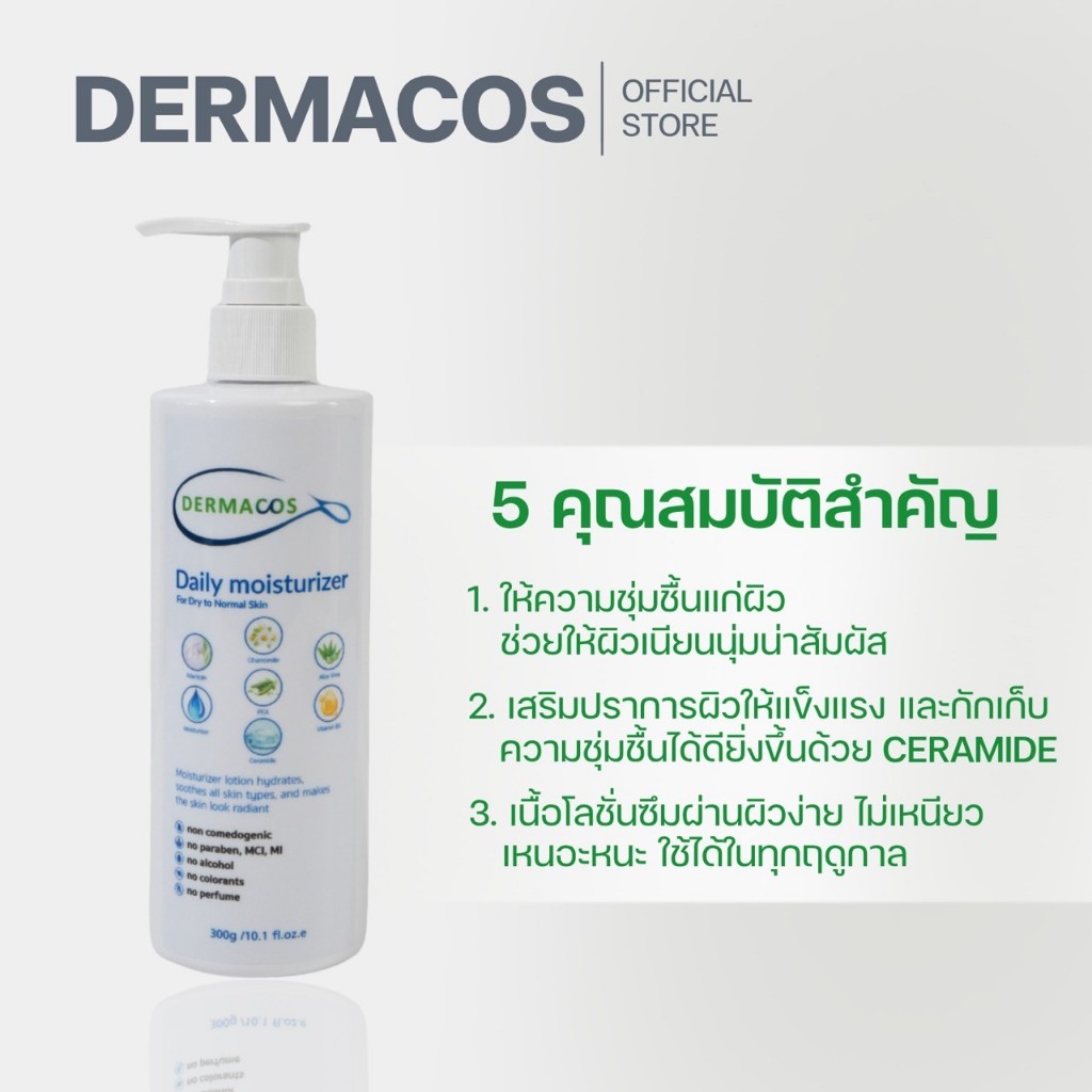 DERMACOS Daily moisturizer โลชั่่นบำรุงผิวกาย ปลอบประโลมผิว ลดการระคายเคือง เสริมปราการผิวให้แข็งแรงด้วย ceramide