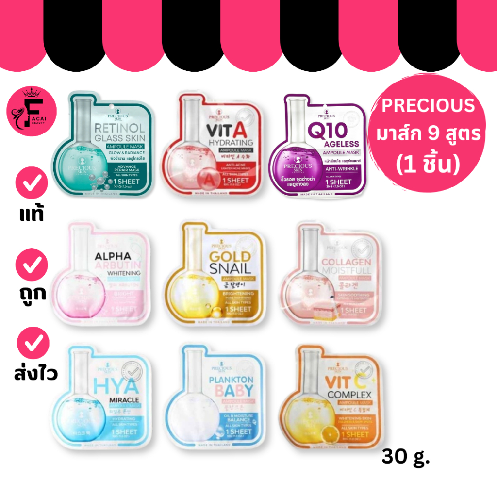 (1 ชิ้น) Precious Skin Thailand แผ่นมาส์กหน้า บำรุงผิว 9 สูตร (ปริมาณ 30 กรัม)
