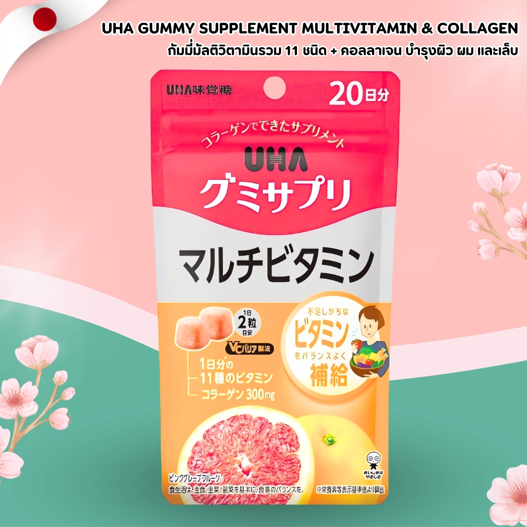 UHA Multivitamin Gummy 🍇 กัมมี่รวมวิตามิน 13 ชนิด เสริมสุขภาพครบในเม็ดเดียว (40 เม็ด / 20 วัน) No.Jp193