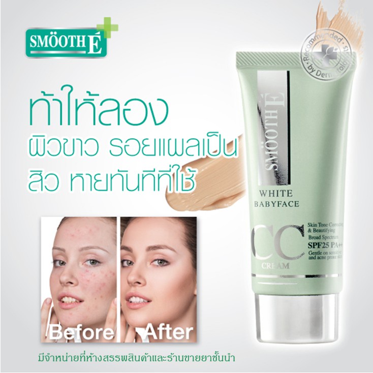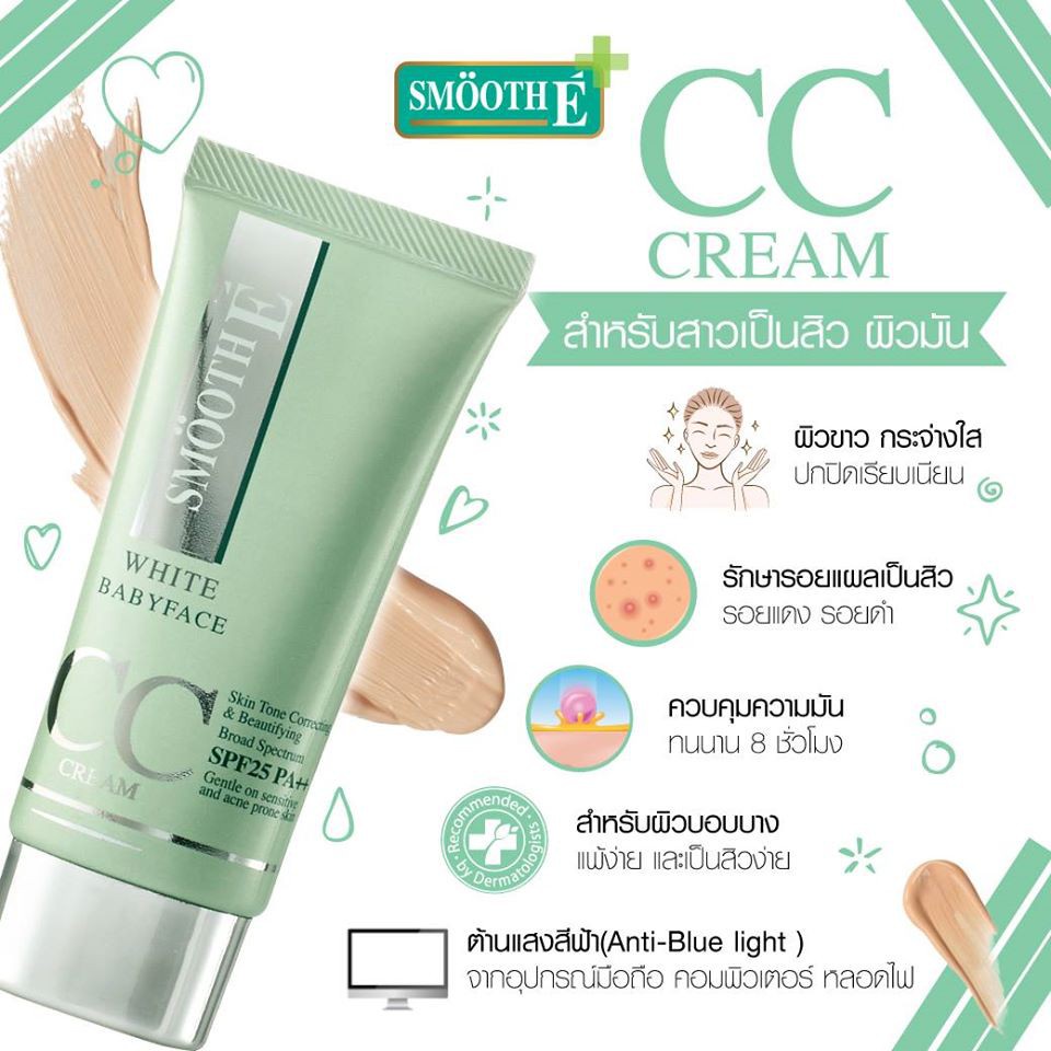 [แพ็ค 3] Smooth E White Babyface CC Cream SPF 50 PA++++ 30g. ครีมกันแดด ลดเลือน ปกปิดรอยดำ รอยแดง รอยสิว ผิวเรียบเนียน