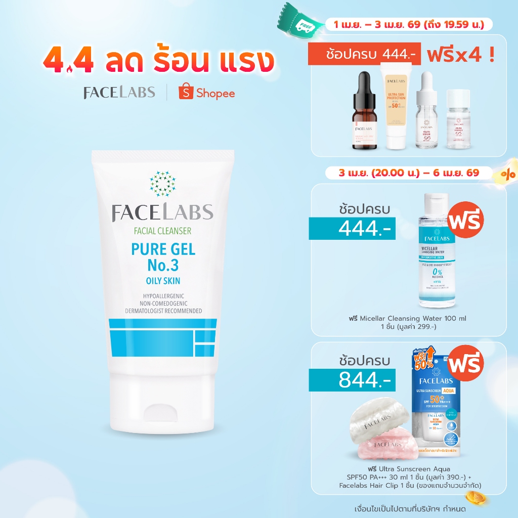 FACELABS Facial Cleanser Pure Gel No.3 เจลล้างหน้าผิวมัน คุมมัน ลดความมันส่วนเกิน ผิวไม่แห้งตึง 120 ml.