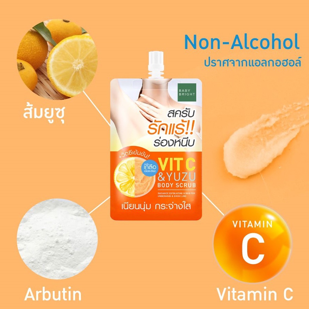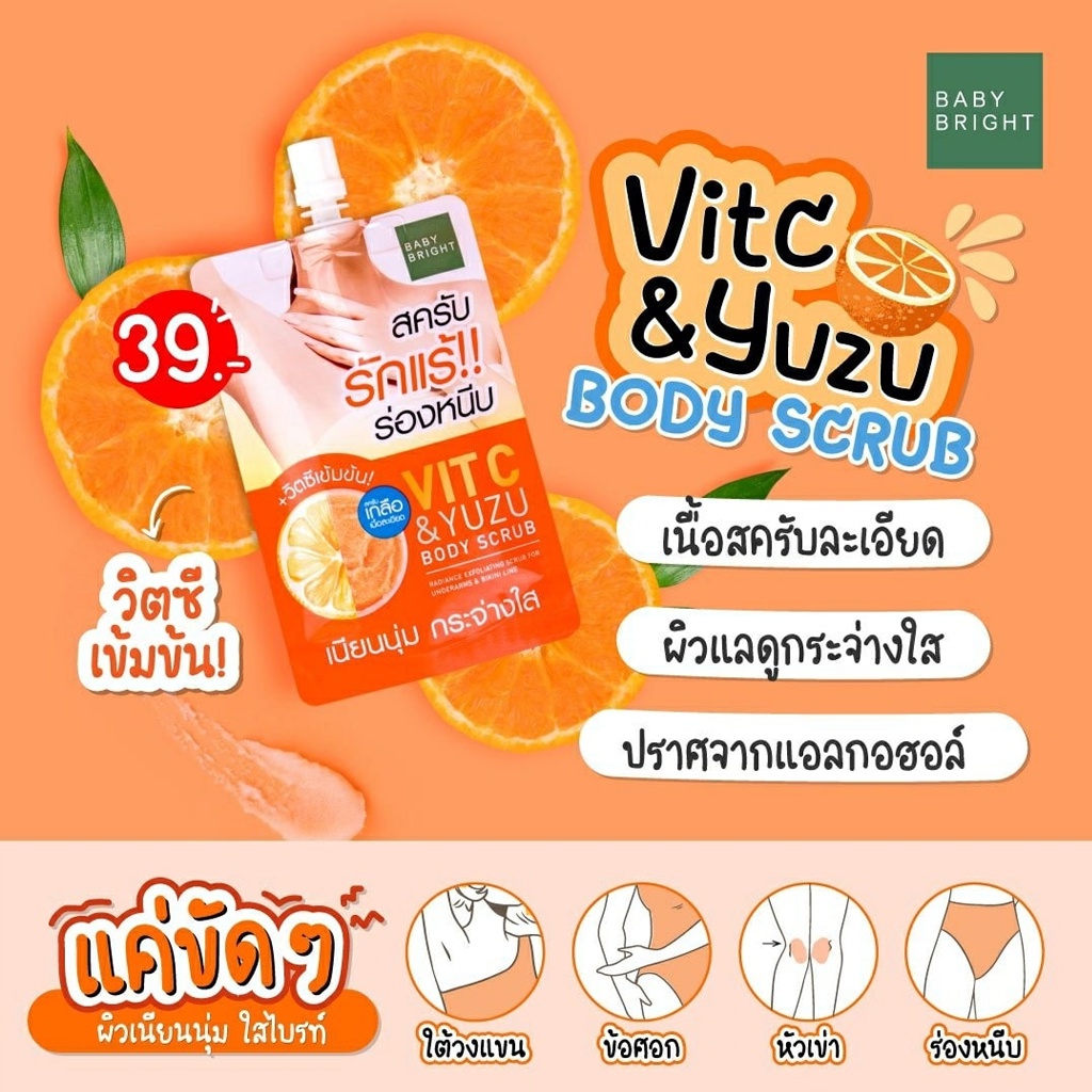 (ขายส่ง ฿22) สครับรักแร้ ขัดผิว เบบี้ไบร์ท วิตซี & ยูซุบอดี้สครับ 40 กรัม BABY BRIGHT VIT C & YUZU BODY SCRUB 40g.
