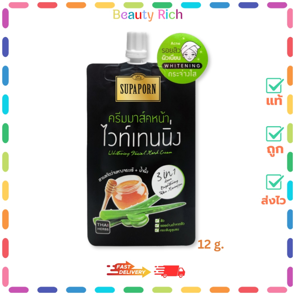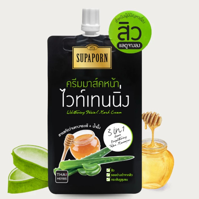 (1 ซอง) Supaporn ครีมมาส์คหน้า ไวท์เทนนิ่ง ว่านหางจระเข้+น้ำผึ้ง (ปริมาณ 12 กรัม)