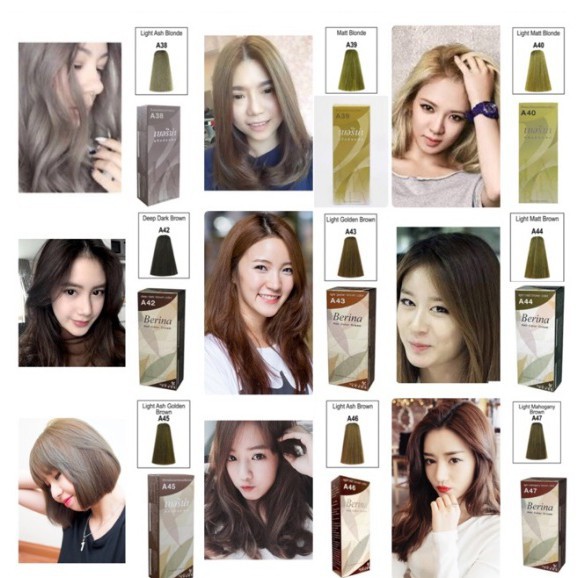 A20 - A39 สีย้อมผมเบอริน่า ครีมเปลี่ยนสีผม Berina มีครบทั้ง 47 สี 60 g.