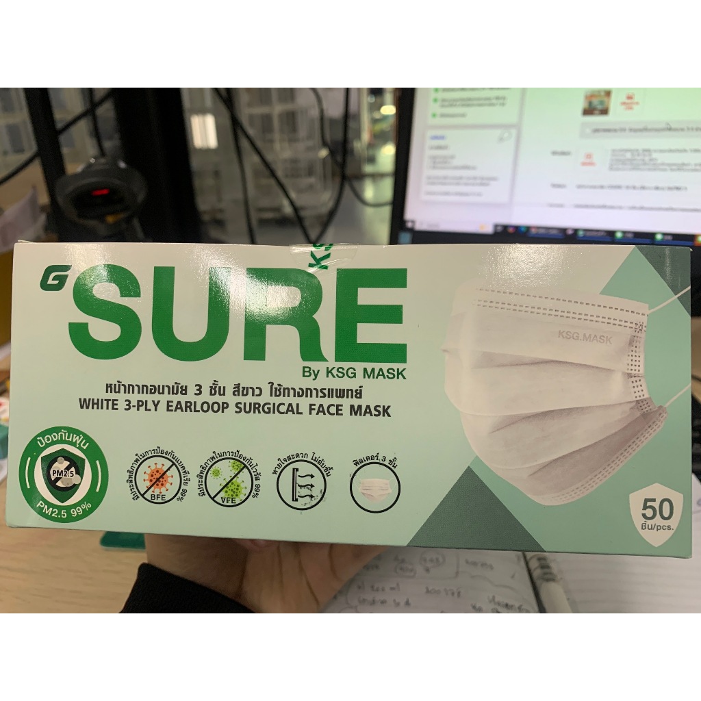 หน้ากากอนามัย GSURE 50 ชิ้น (สีขาว-เขียว) กันPM2.5