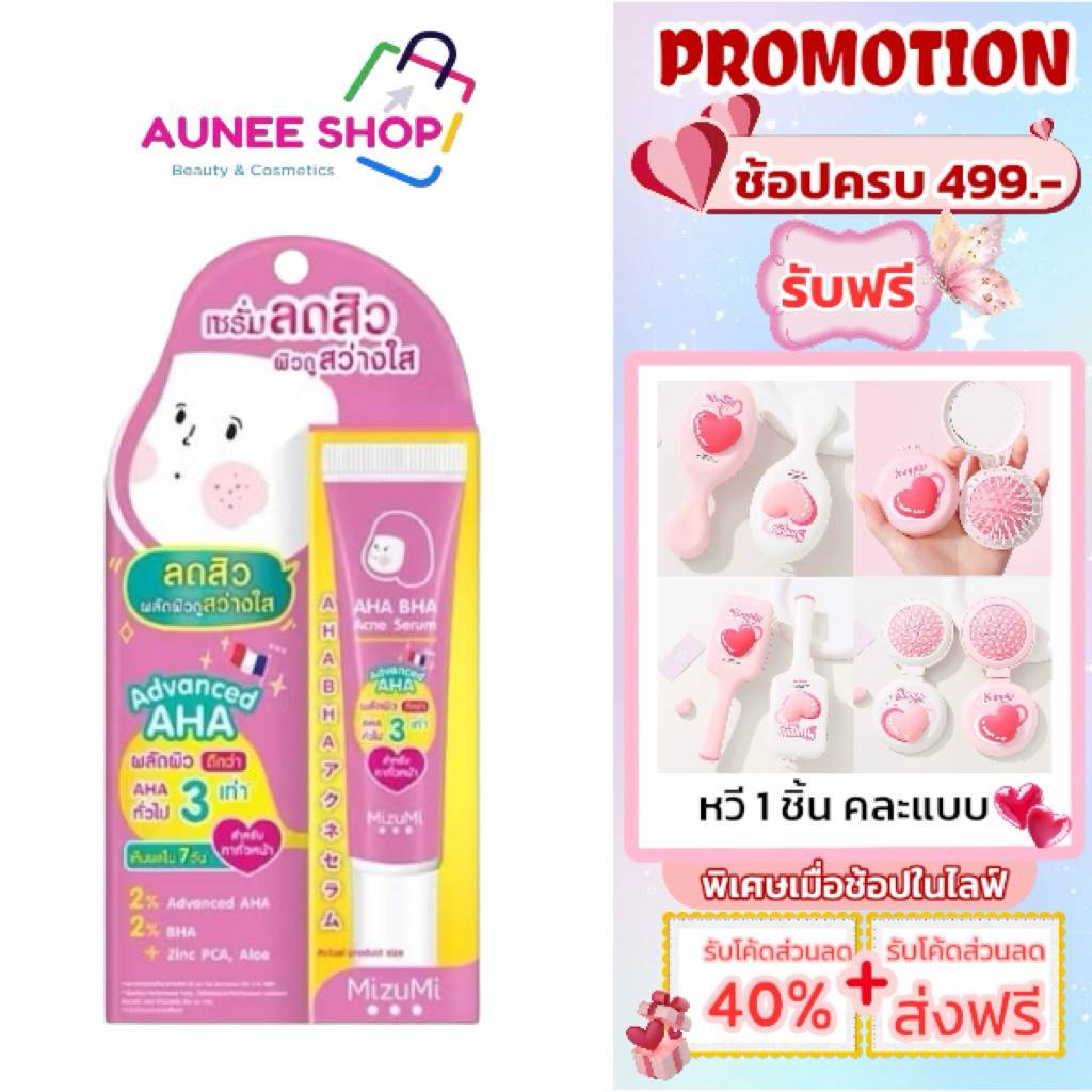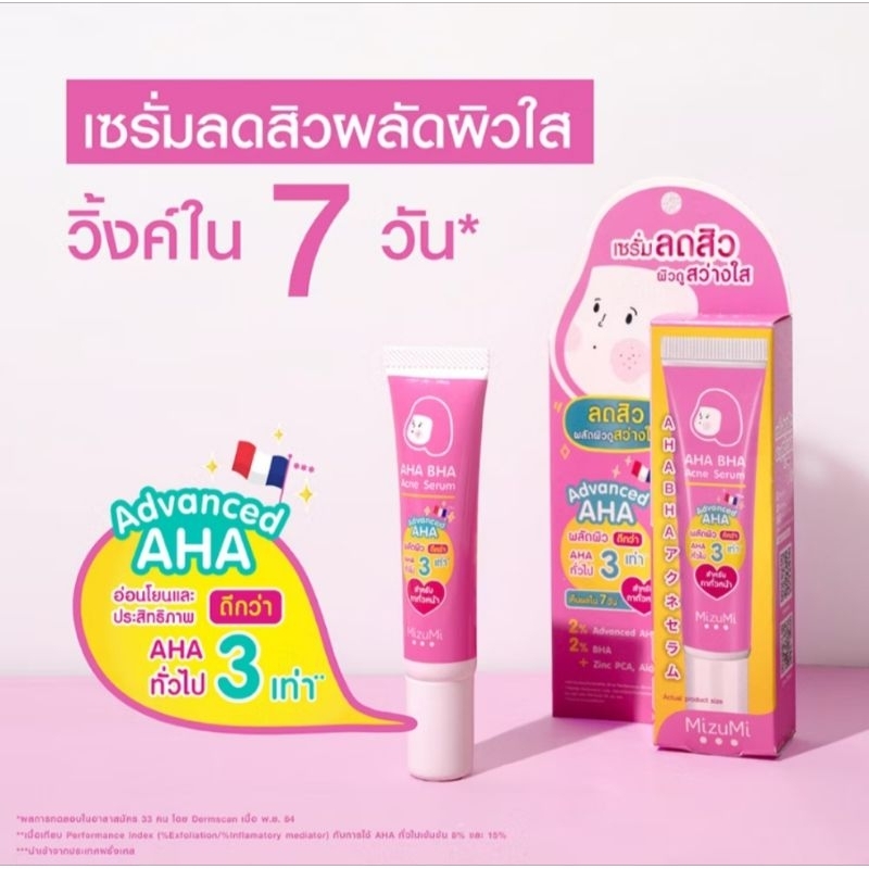ส่งฟรี/มีไลฟ์ (หลอด)MizuMi AHA BHA Acne Serum 13g เซรั่มลดสิว เผยผิว ดูเนียนเรียบ ผิวสว่าง ดุจเปิดไฟให้ผิว