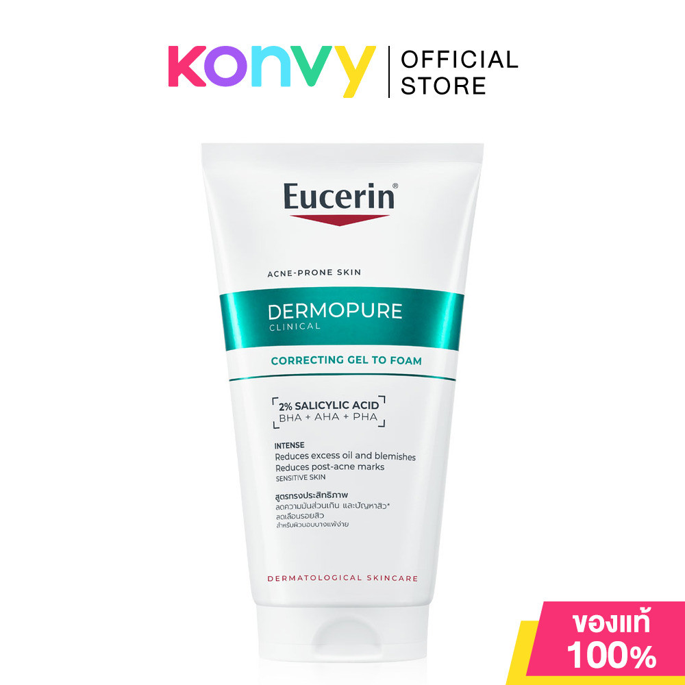 Eucerin Dermopure Clinical Correcting Gel to Foam 150ml เจลโฟมล้างหน้า สำหรับผิวมันเป็นสิว ยูเซอริน.