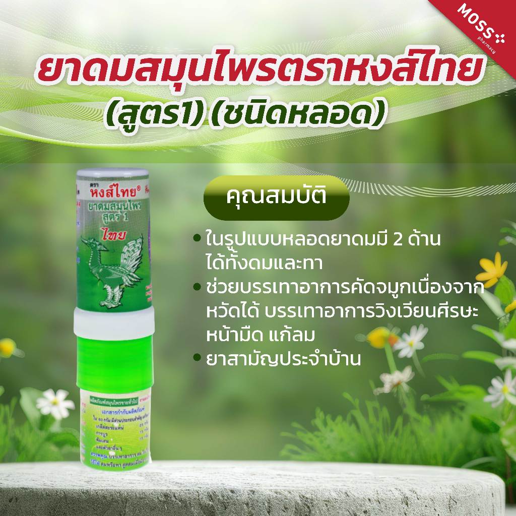 ยาดมสมุนไพร หงส์ไทย สูตร 1 แบบหลอด สูตรดั้งเดิม หอมชื่นใจ ปริมาณ 3 CC