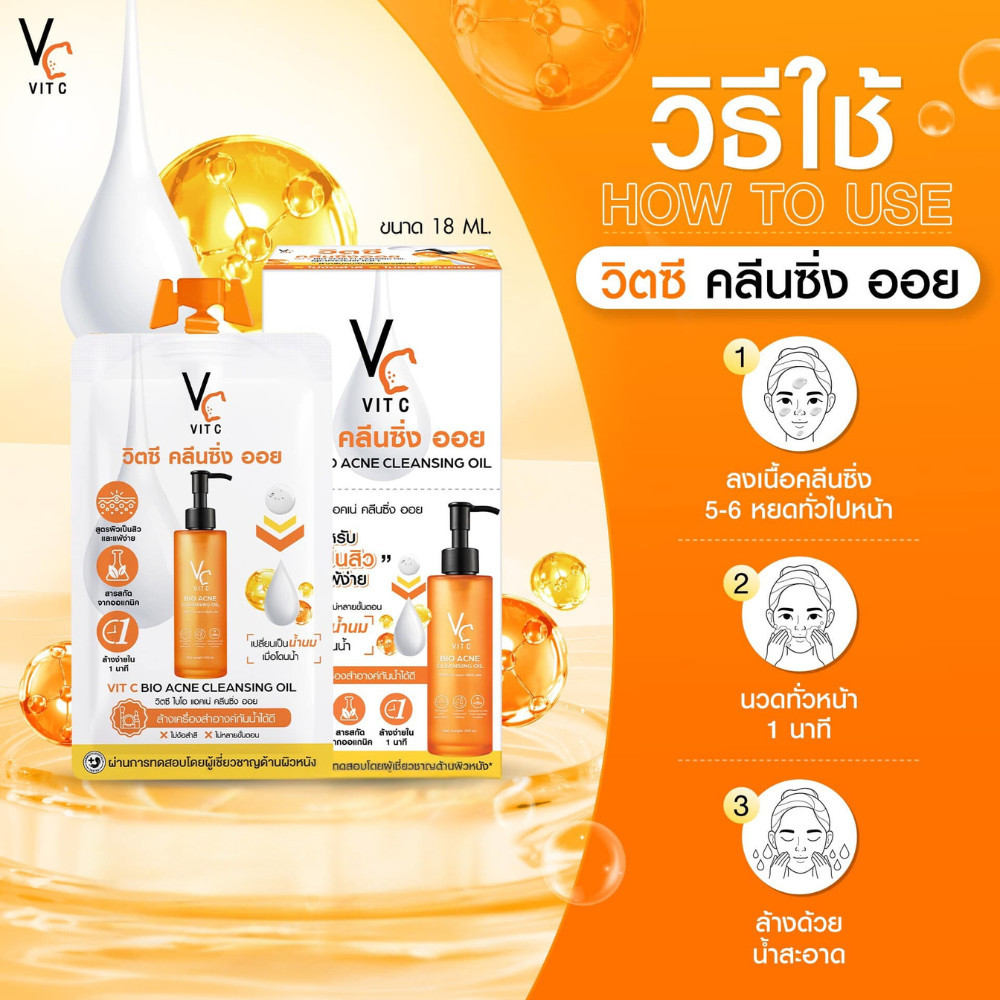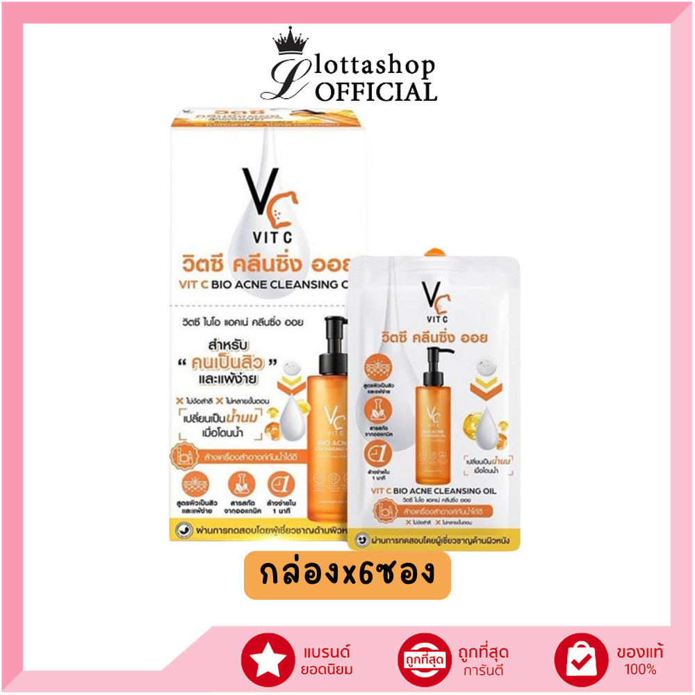 🔥แท้/ถูกที่สุด/ไลฟ์ทุกวัน🔥(กล่องx6ซอง) VC Vit C Bio Acne Cleansing Oil แอคเน่ คลีนซิ่ง ออย