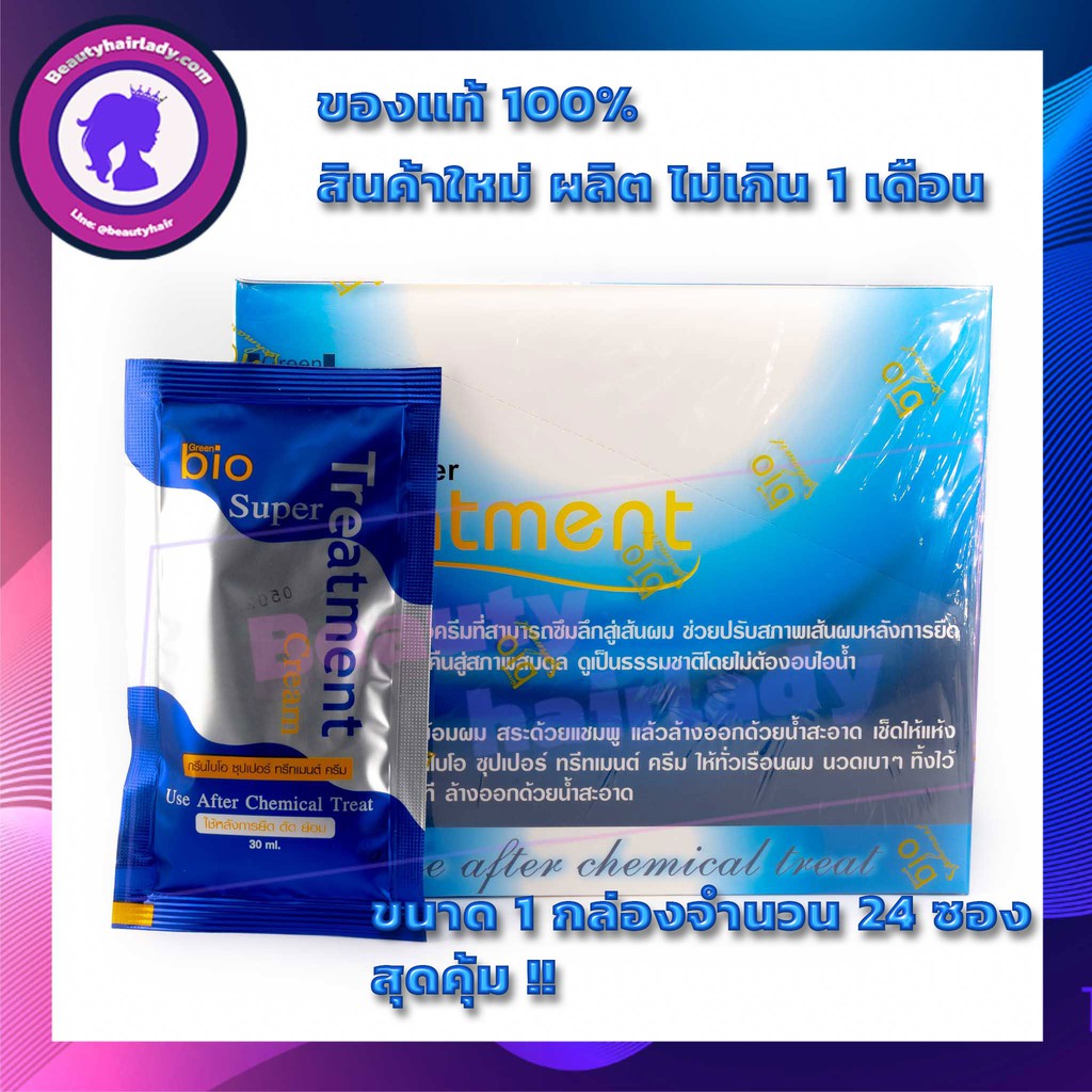 แท้💎Green Bio super treatment กรีนไบโอ ซุปเปอร์ ทรีทเมนท์ 1กล่อง 24ซอง บำรุงผมแห้งเสีย หลังการยืด ดัด ย้อม ครีมหมักผม