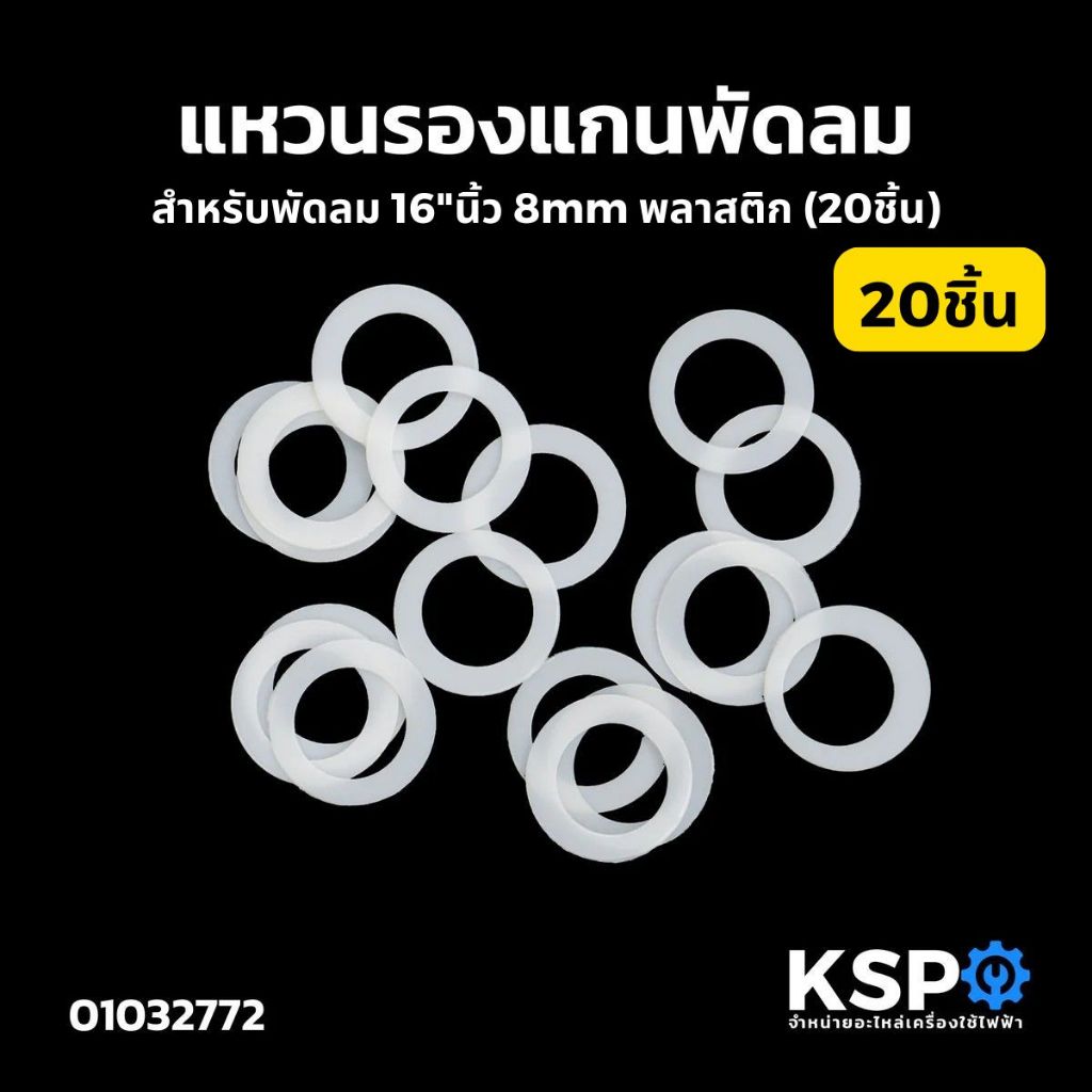 แหวนไมล่า แหวนรองแกนพัดลม 16"นิ้ว 8mm พลาสติก 20ชิ้น, 50ชิ้น อะไหล่พัดลม