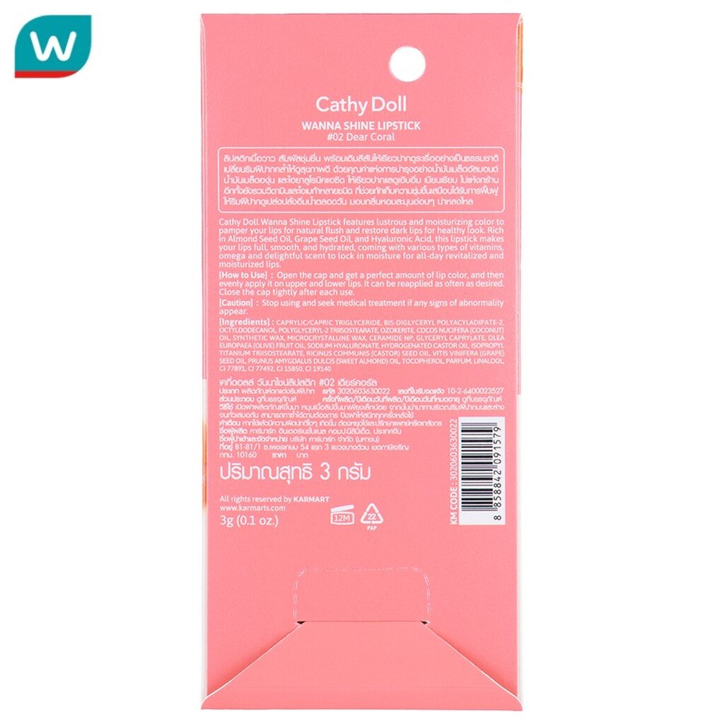 Cathy Doll เคที่ ดอลล์ วันนา ไชน์ ลิปสติก 3ก. #02 เดียร์ คอรัล