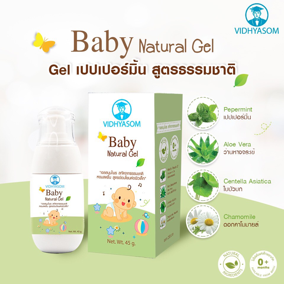เจลสมุนไพรสูตรเปปเปอร์มิ้น Vidhyasom Baby Natural Gel 45 กรัม