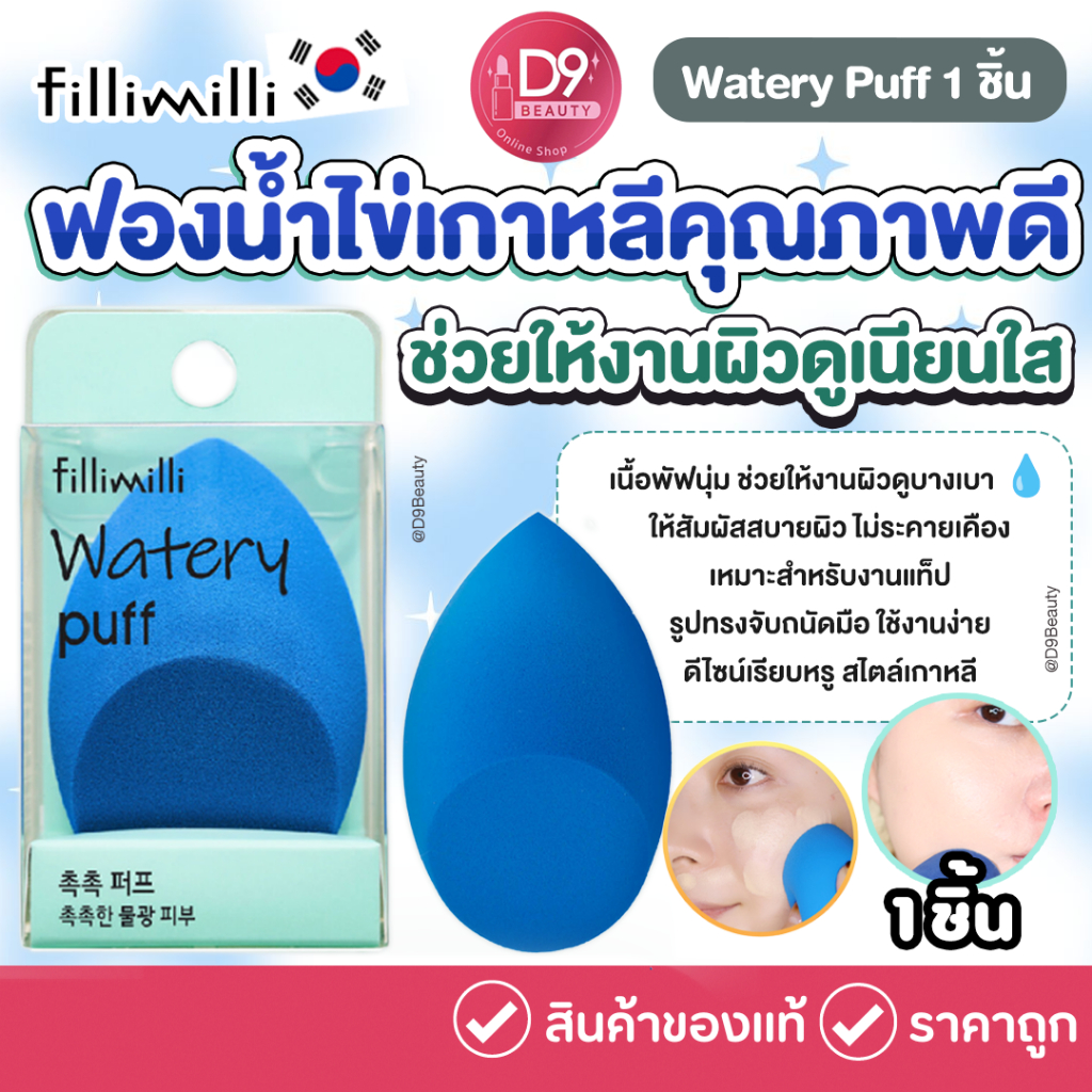 Fillimilli Watery Puff 1 ชิ้น✨ พัฟแต่งห น้าสำหรับงานผิว ช่วยเกลี่ยเมคอัพให้ดูบางเบาเป็นธรรมชาติ
