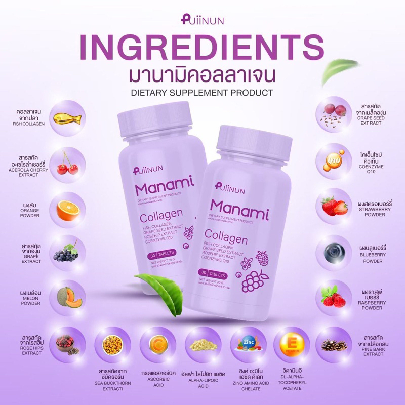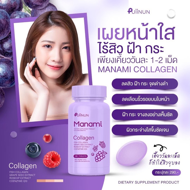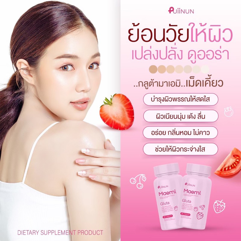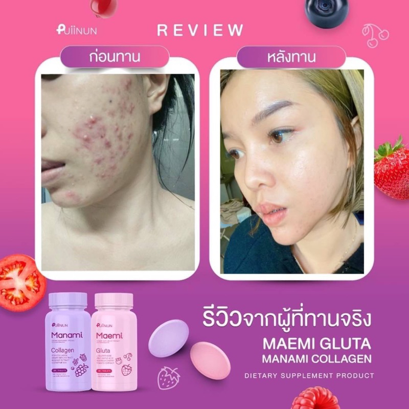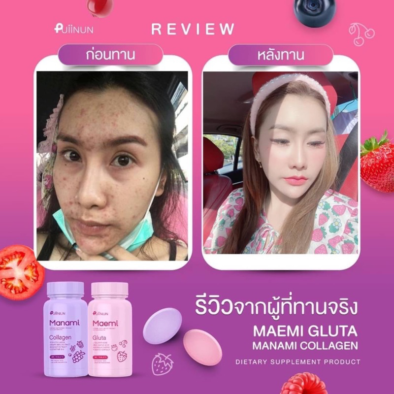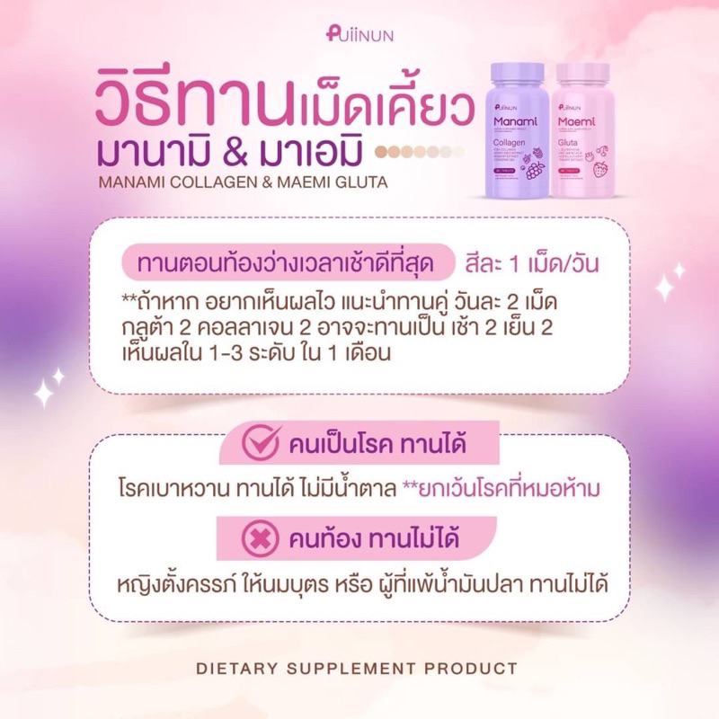 (ของแท้+ส่งฟรี) เม็ดเคี้ยวปุยนุ่น 💜 กลูต้ามาเอมิ มานามิ คอลลาเจน ผิวขาว ลดสิว กันแดด Puiinun Maemi Manani Collagen Gluta
