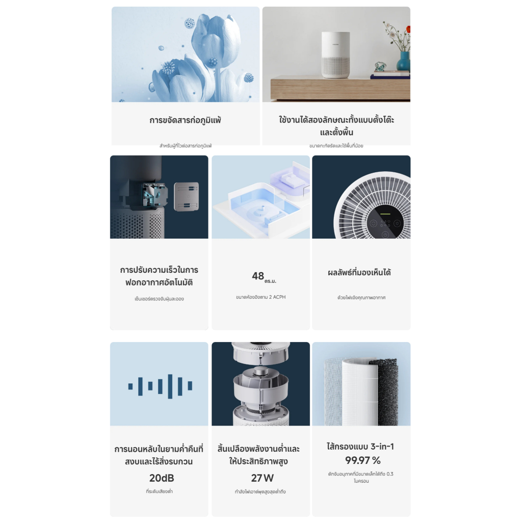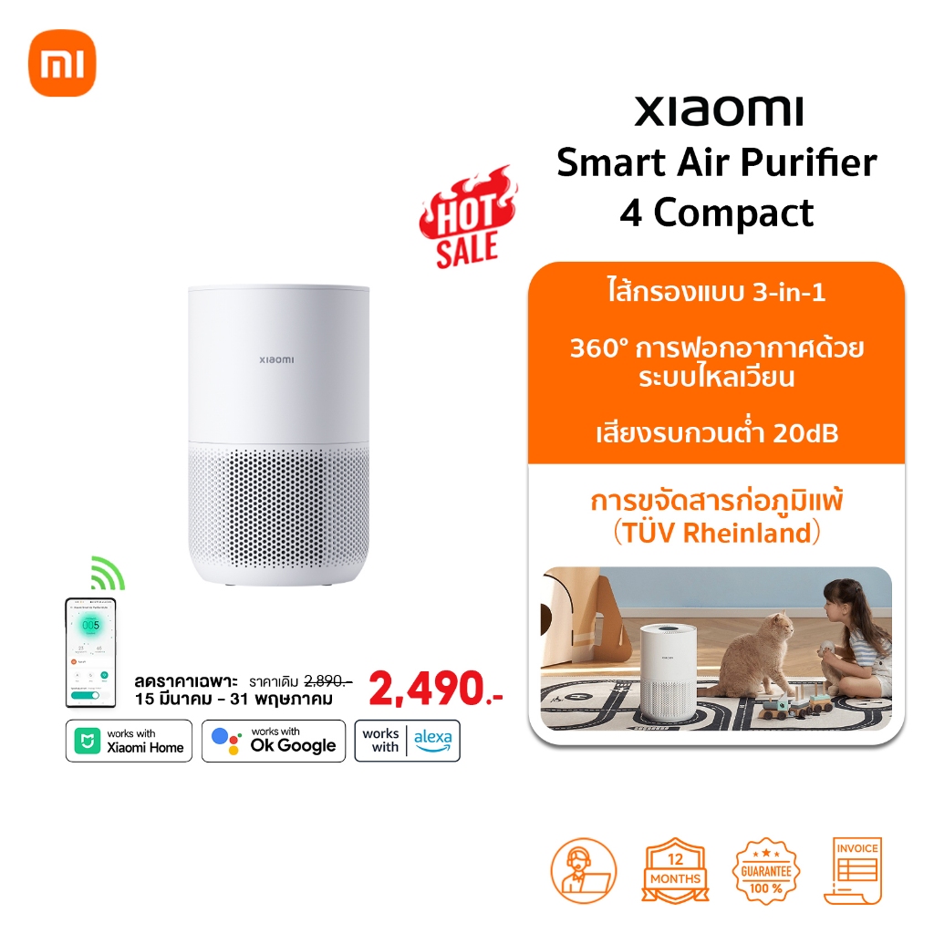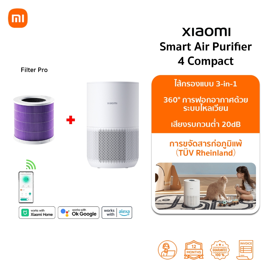 Xiaomi Smart Air Purifier 4 Compact เครื่องฟอกอากาศอัจฉริยะ | 230ลบ.ม./ชม. | พื้นที่ให้บริการ16-27ตร.ม. | รับประกัน 1ปี