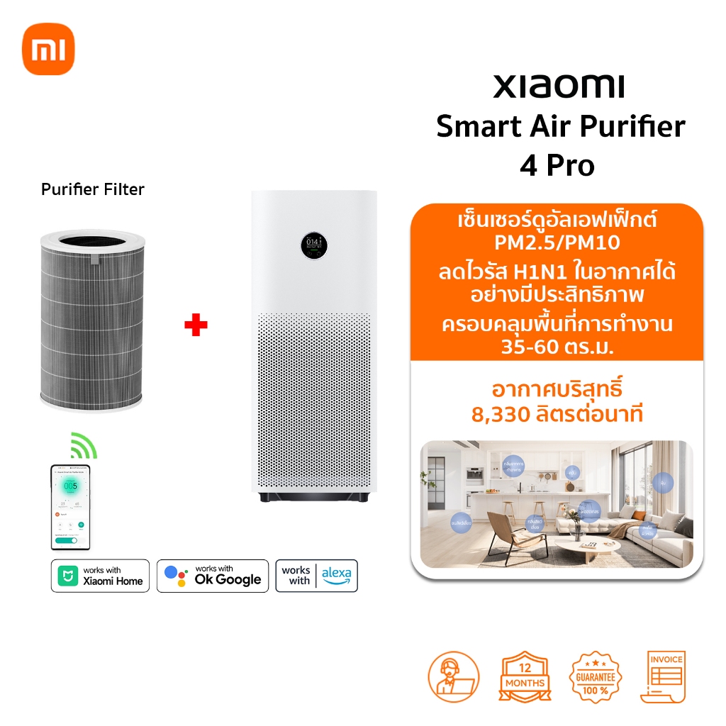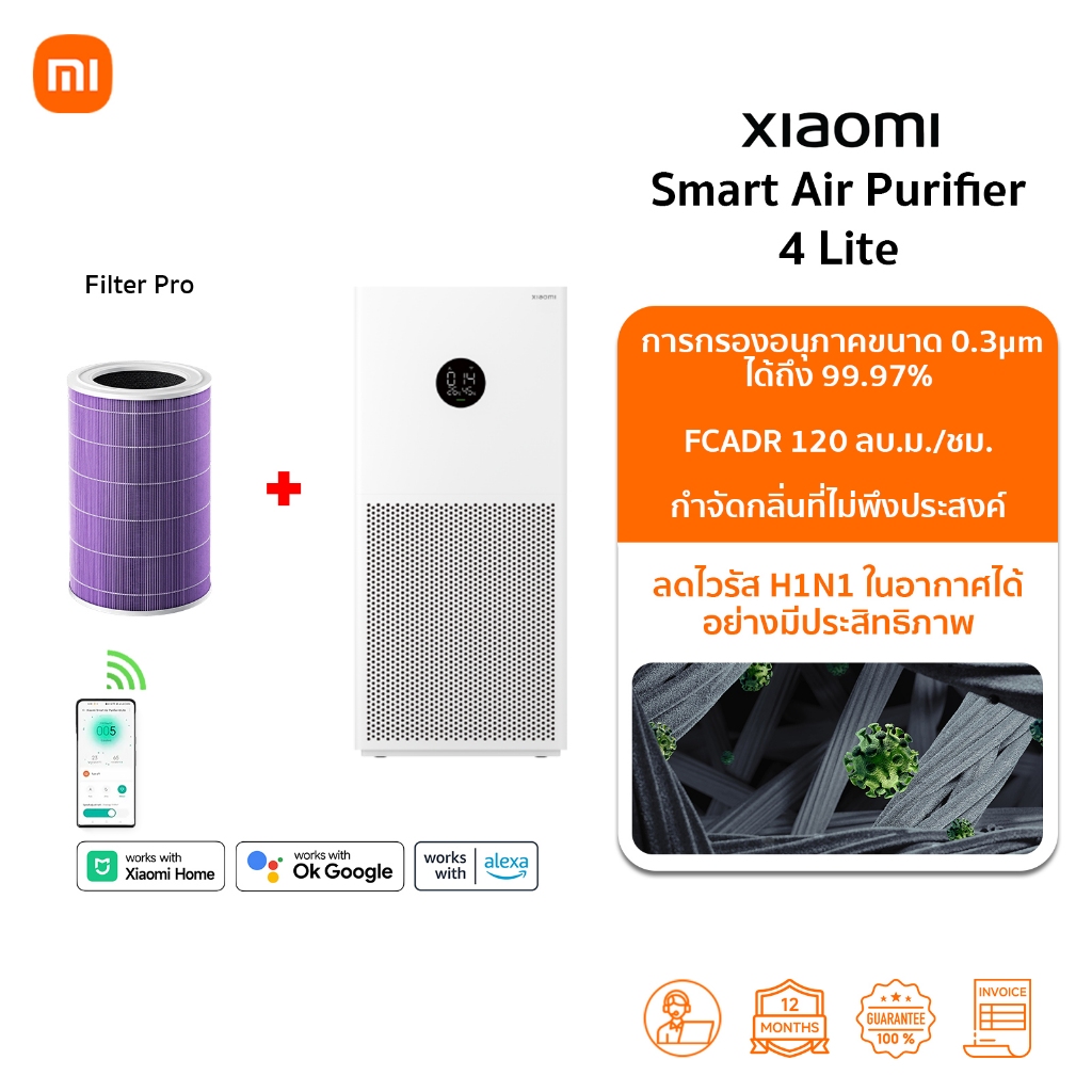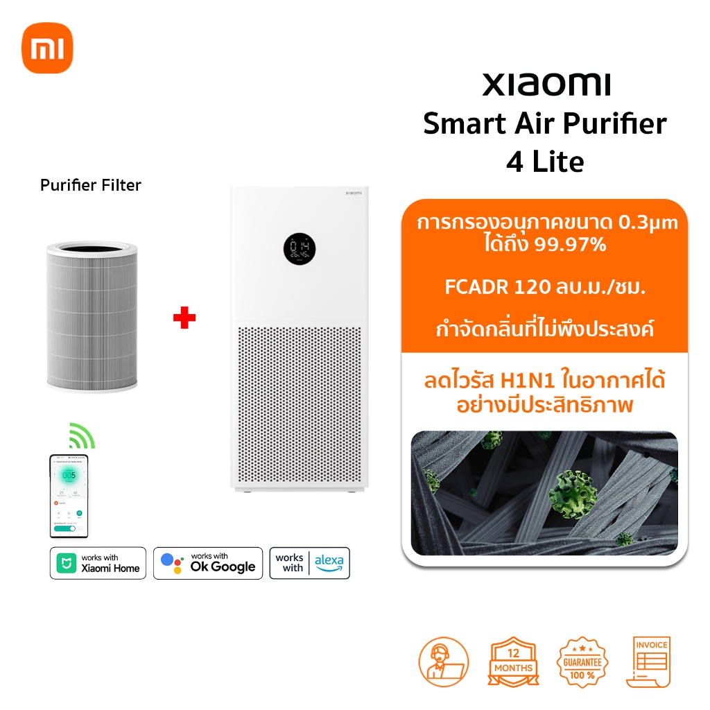 Xiaomi Smart Air Purifier 4 Compact เครื่องฟอกอากาศอัจฉริยะ | 230ลบ.ม./ชม. | พื้นที่ให้บริการ16-27ตร.ม. | รับประกัน 1ปี