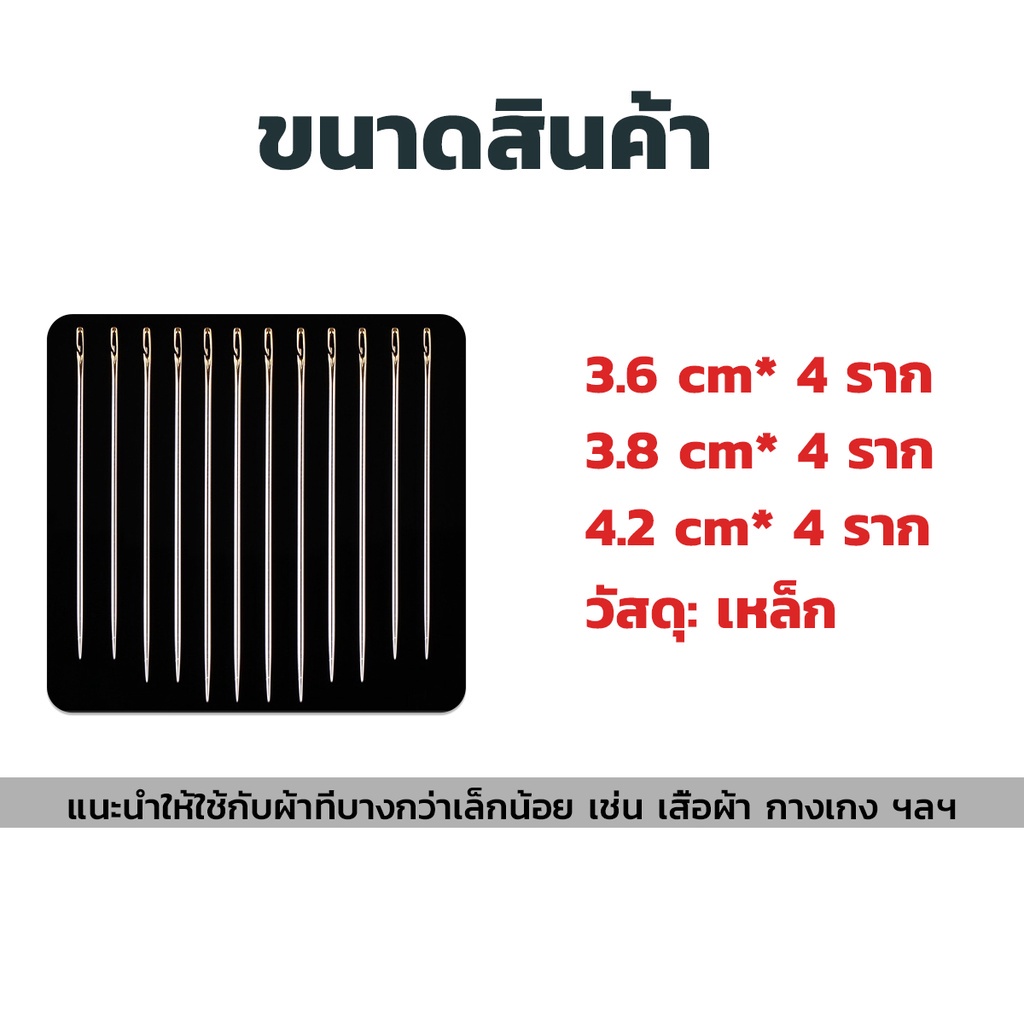 อุปกรณ์เข็มเย็บผ้า Diy สําหรับใช้ในครัวเรือน ไม่ต้องใช้ที่สนเข็ม 12 เล่ม อุปกรณ์เข็มเย็บผ้า Sewing needle