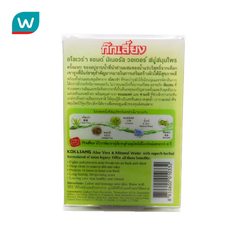 Kokliang ก๊กเลี้ยง อโล เวร่า แอนด์ มิเนอรัล วอเตอร์ สบู่สมุนไพร 90 กรัม