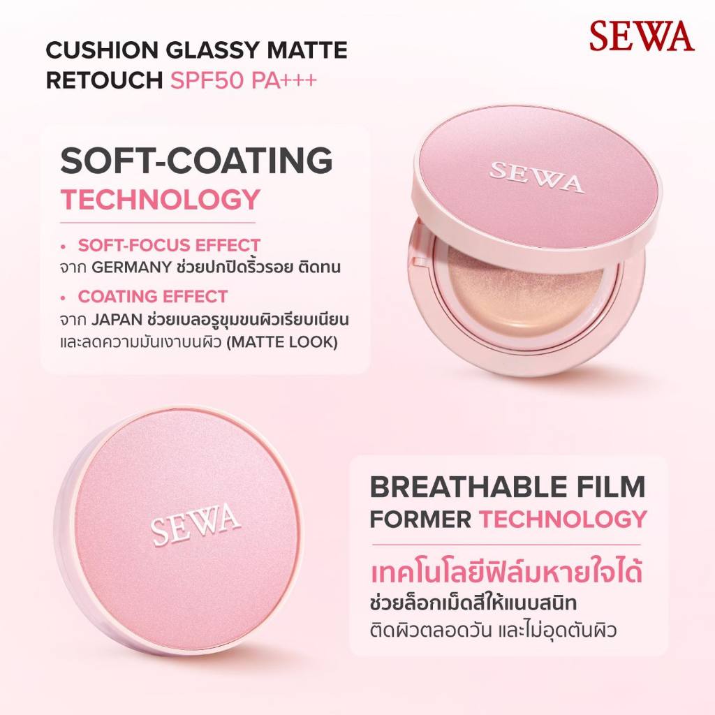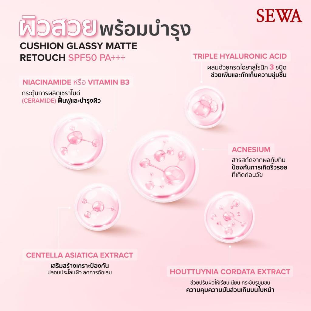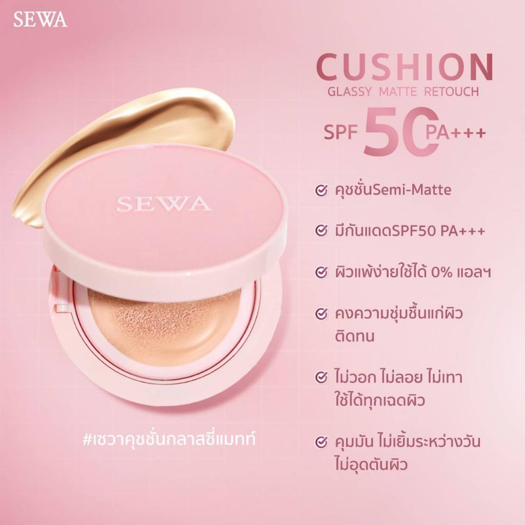 ถูก/แท้/มีไลฟ์ คุชชั่น คูชั่น SEWA Cushion Glassy Matte Retouch SPF50 PA+++ คุชชั่นกลาสซี่แมทท์ ปกปิด คุมมัน เบลอรูขุมขน