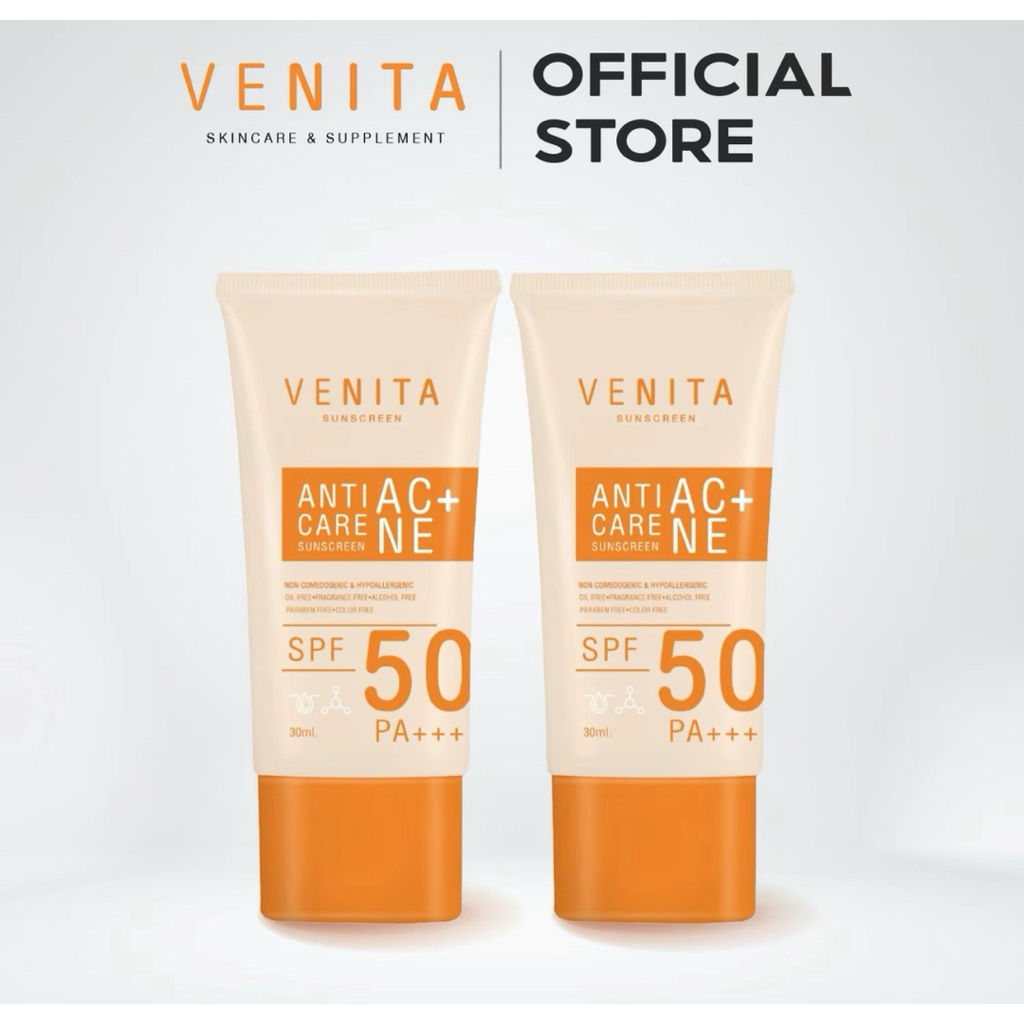 [ 2 หลอด ] Venita Anti-Acne Care Sunscreen SPF50/PA+++plus 30 ml เวนิต้า