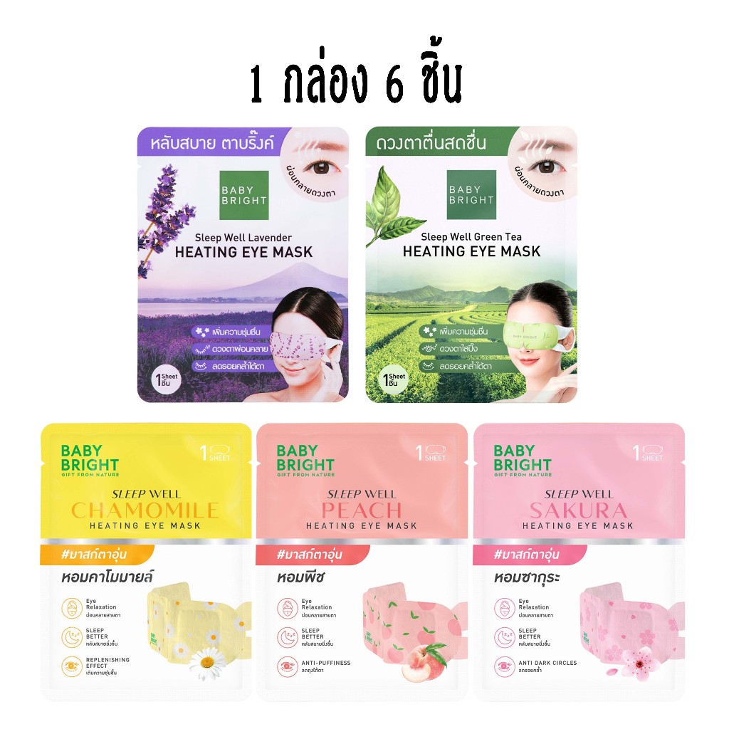 (ยกกล่อง 6 ชิ้น) Eye Mask Baby Bright Sleep Well Lavender Heating Eye Mask 5 กลิ่น