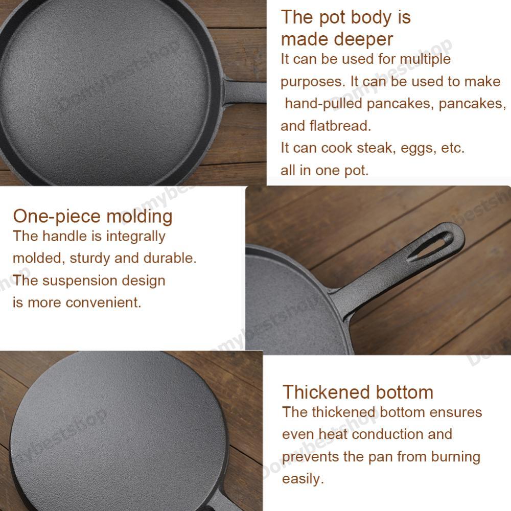 COD 20 ซม.เหล็กหล่อ Skillet หนาไข่เจียวกระทะรอบทําความสะอาดง่ายสําหรับทอด Saute ทําอาหารพิซซ่า & More
