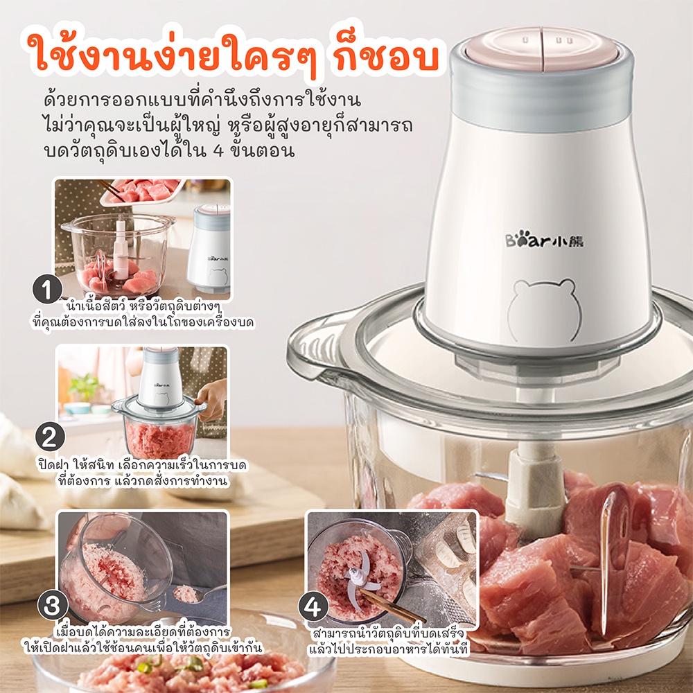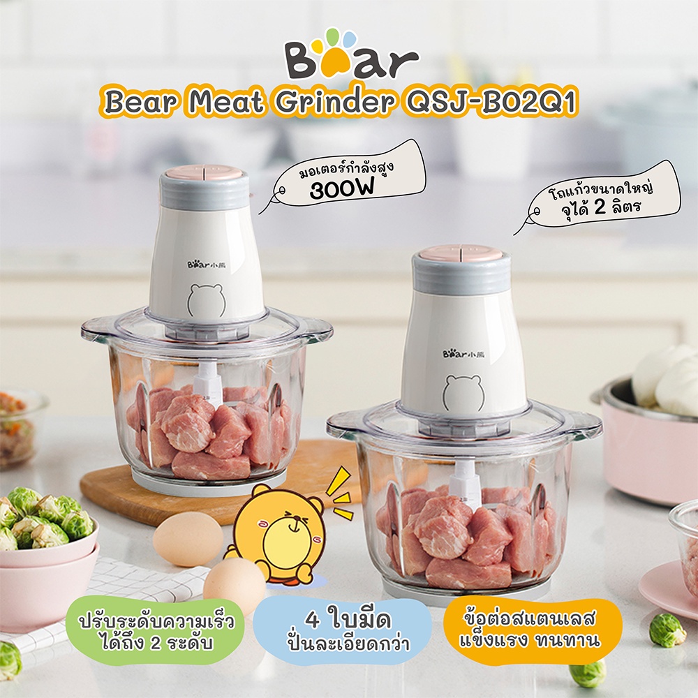 [ลดเหลือ 674] Bear Meat Grinder QSJ-B02Q1 เครื่องบดเนื้อ ความจุ 2 ลิตร ปรับได้ 2 ระดับ วัสดุ Food Grade -30D