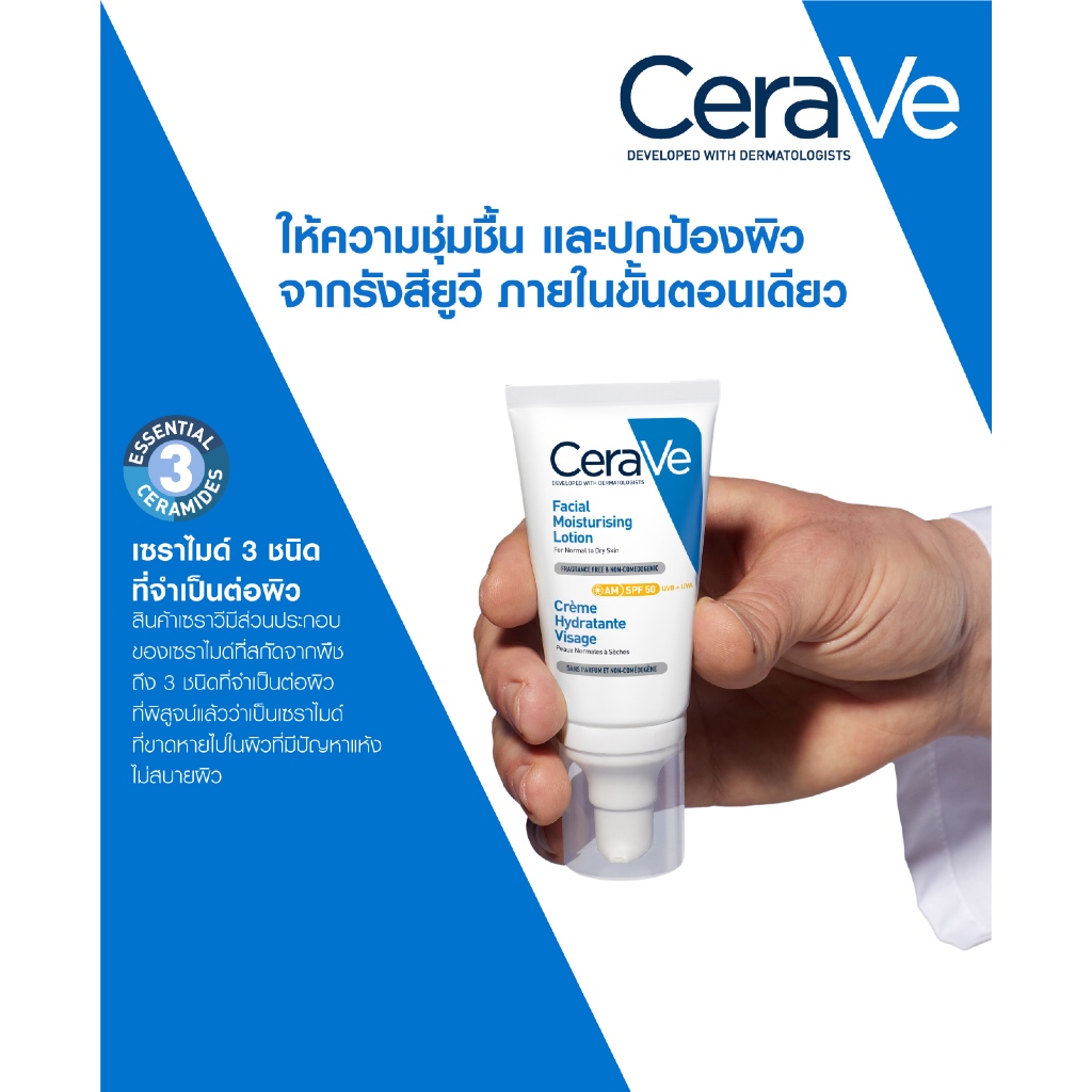 CERAVE Facial Moisturising Lotion SPF50 เซราวี โลชั่นบำรุงผิวหน้า ผิวธรรมดา-ผิวเเห้ง 52ml.