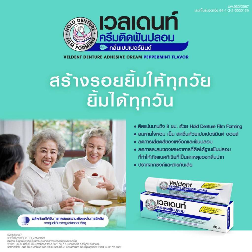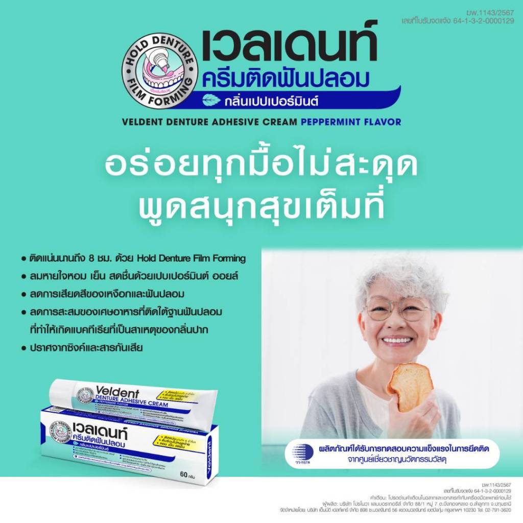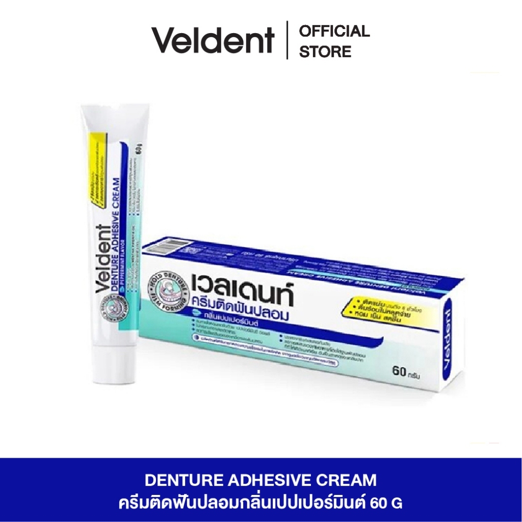 VELDENT DENTURE ADHESIVE CREAM 60 g. ผลิตภัณฑ์ครีมติดฟันปลอม กลิ่นเปปเปอร์มิ้นต์ ขนาด 60 กรัม
