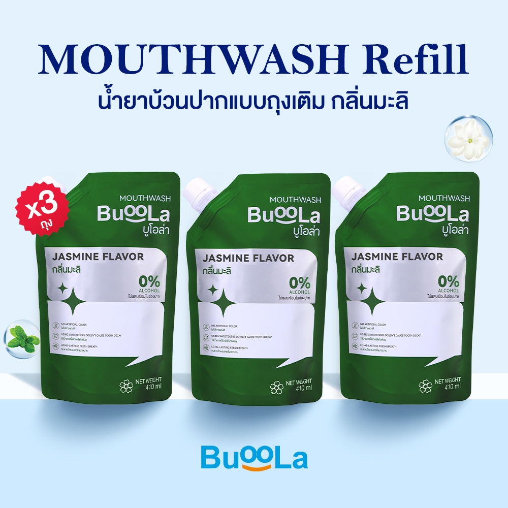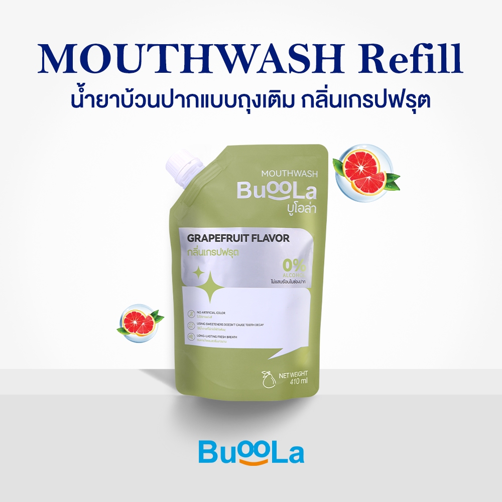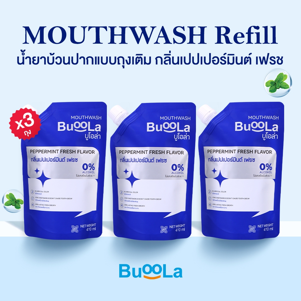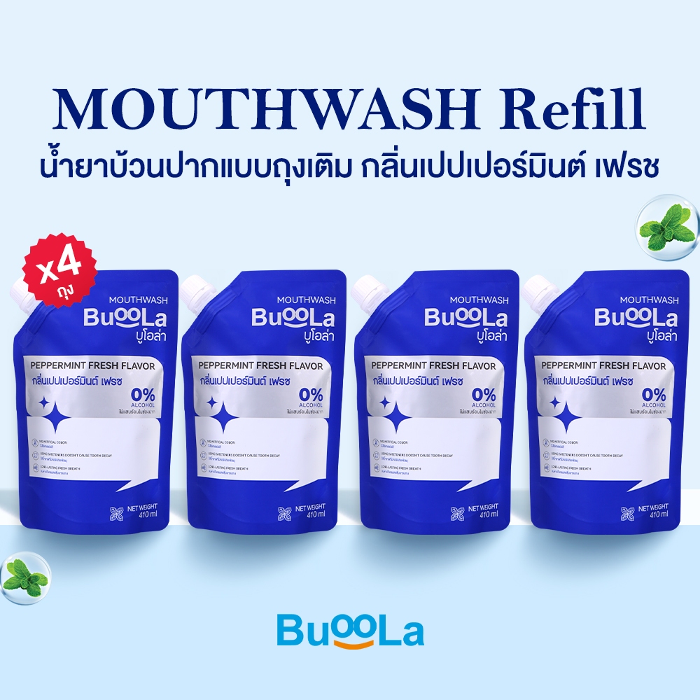 [ไม่มีที่เปิด ขวด] Buoola น้ำยาบ้วนปากแบบถุงเติม ทั้งหมด 4 กลิ่น ช่วยให้ปากสะอาด หอมสดชื่น ช่วยลดกลิ่นปาก