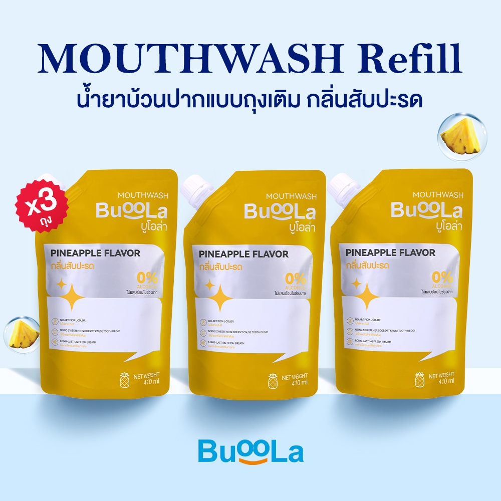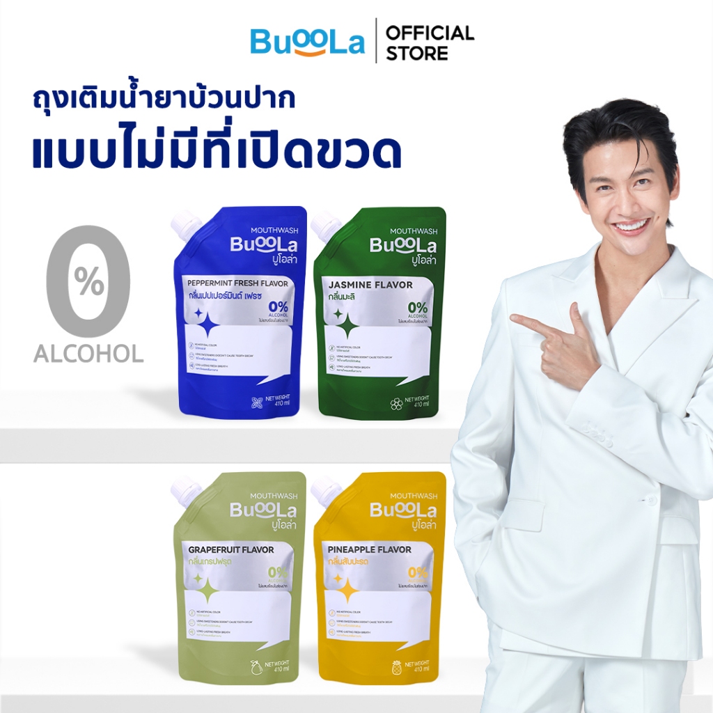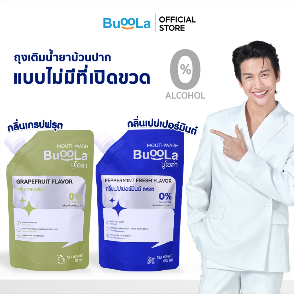 [ไม่มีที่เปิด ขวด] Buoola น้ำยาบ้วนปากแบบถุงเติม ทั้งหมด 4 กลิ่น ช่วยให้ปากสะอาด หอมสดชื่น ช่วยลดกลิ่นปาก