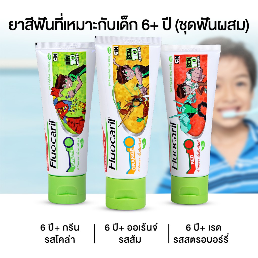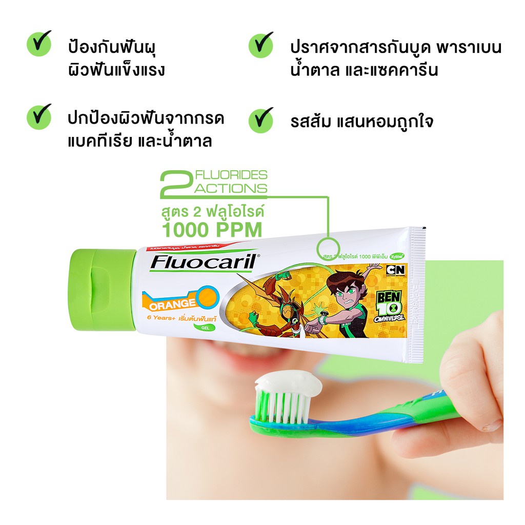 (1แถม1) Fluocaril Kids Toothpaste 2-6 Years , 6 Years+ 40g / 65g.ฟลูโอคารีล คิดส์ ยาสีฟัน 2-6ปี , 6ปี+ 40กรัม / 65กรัม.
