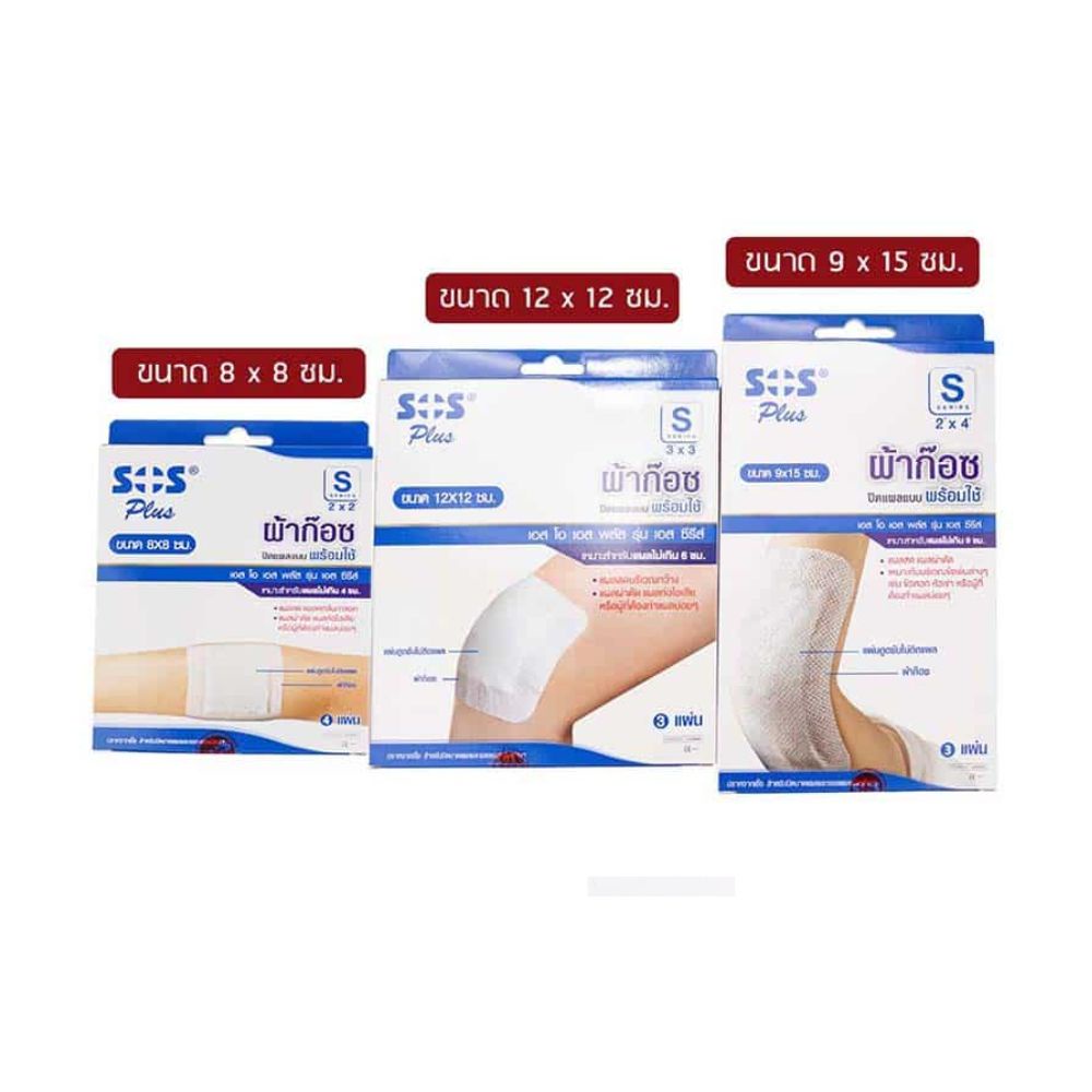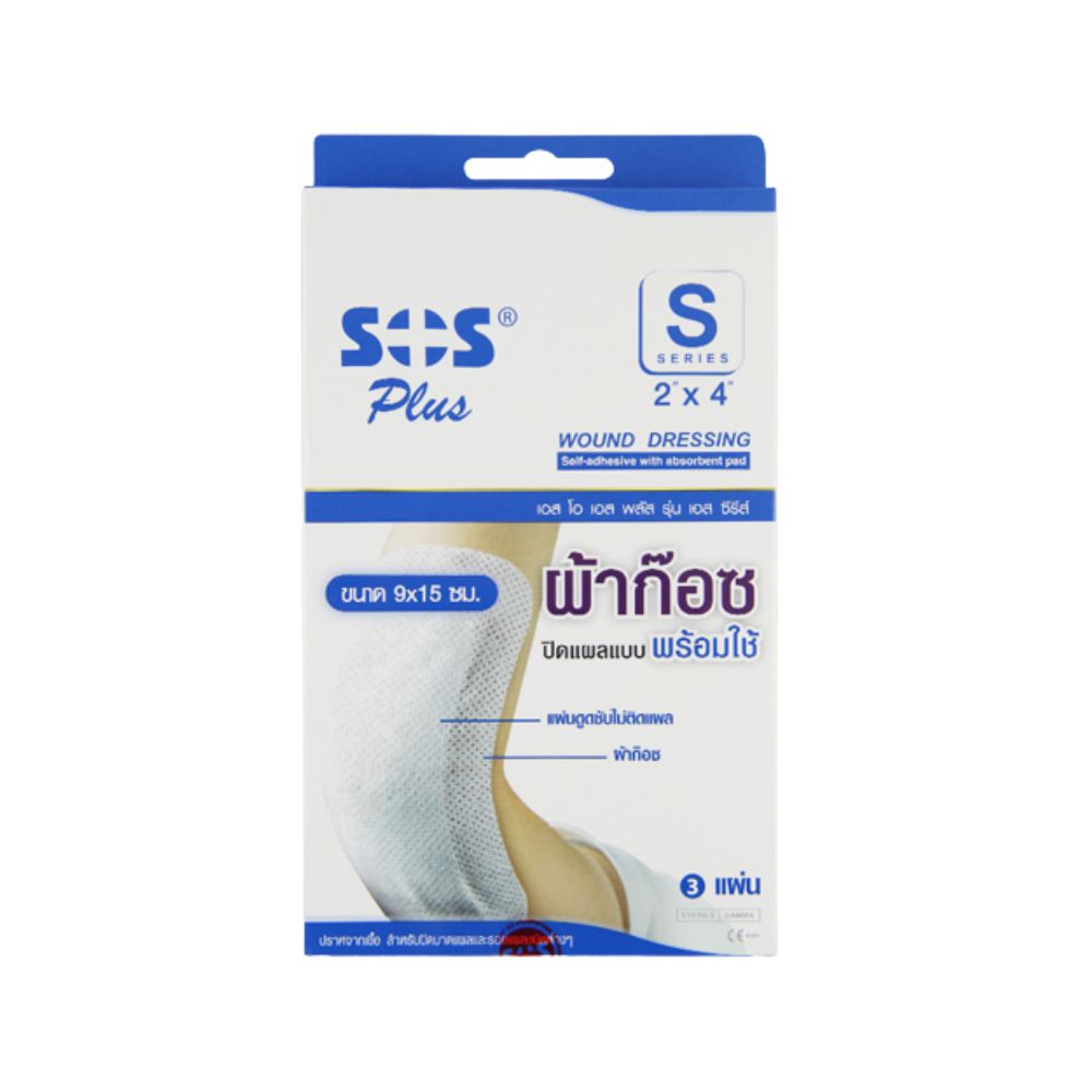 SOS ผ้าก๊อซปิดแผลพร้อมใช้ รุ่น S series ขนาด 9X15 ซม. (3 ชิ้น / กล่อง)