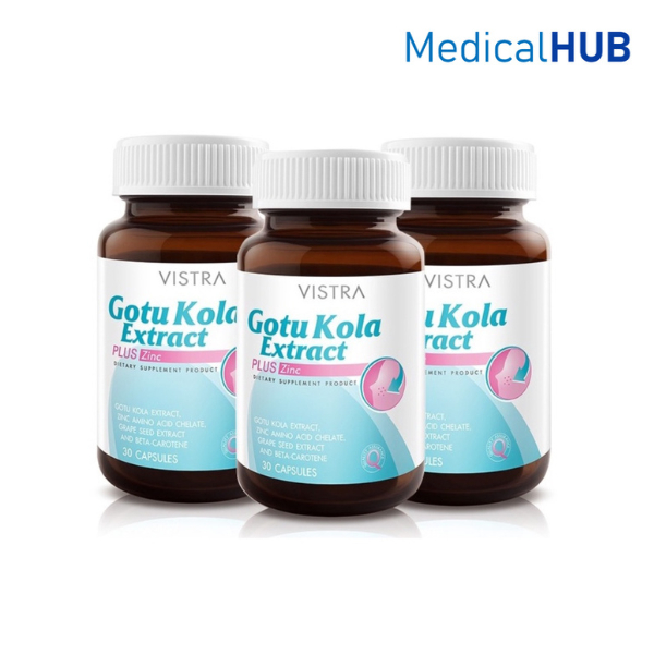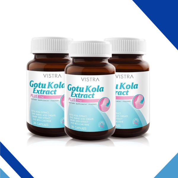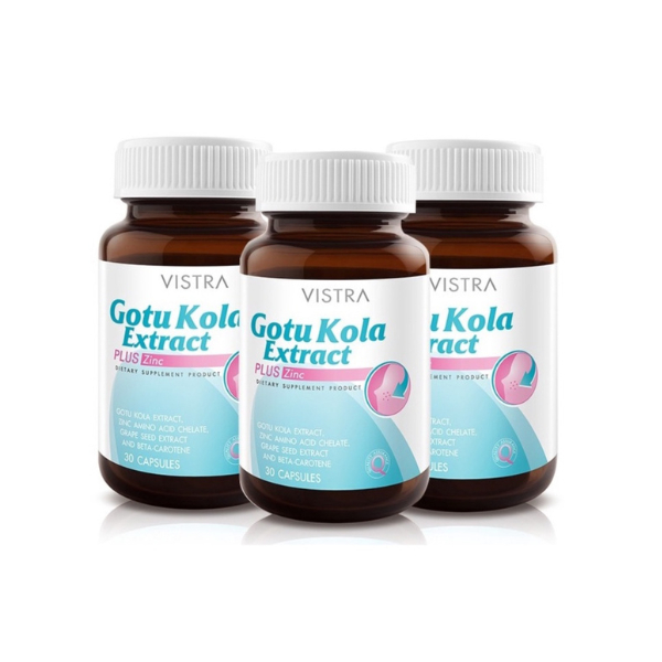 Vistra Gotu Kola Extract Plus Zinc วิสทร้า ป้องกันปัญหาผิว สิวอักเสบ 30 เม็ด จำนวน 3 ขวด (3X06043)