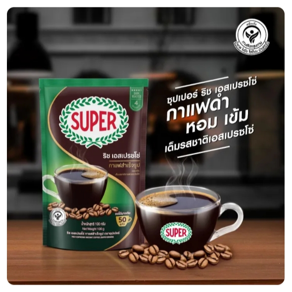 ซุปเปอร์กาแฟ ริช เอสเปรสโซ่ กาแฟสำเร็จรูป (ถุงเติม) ขนาด 40-100 กรัม