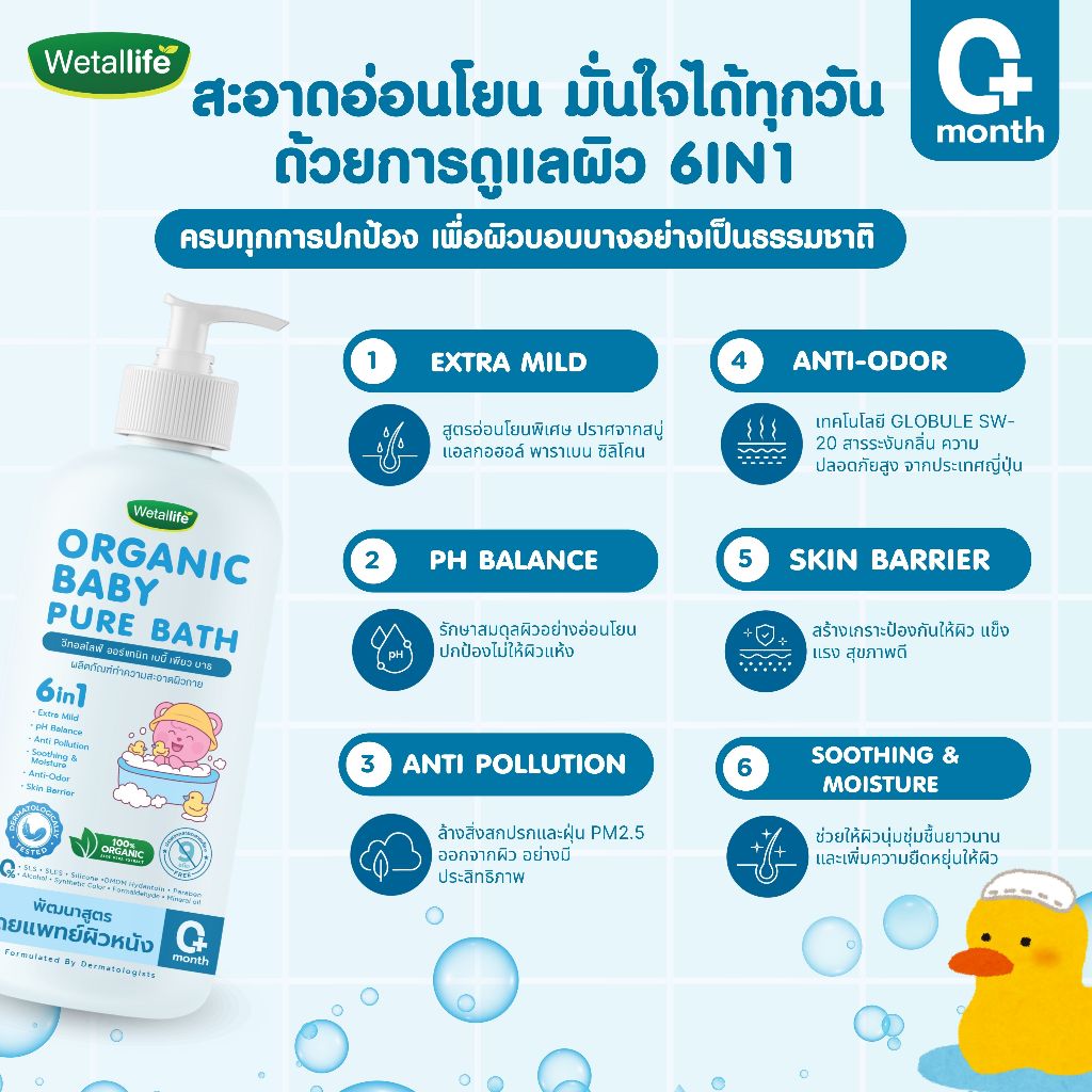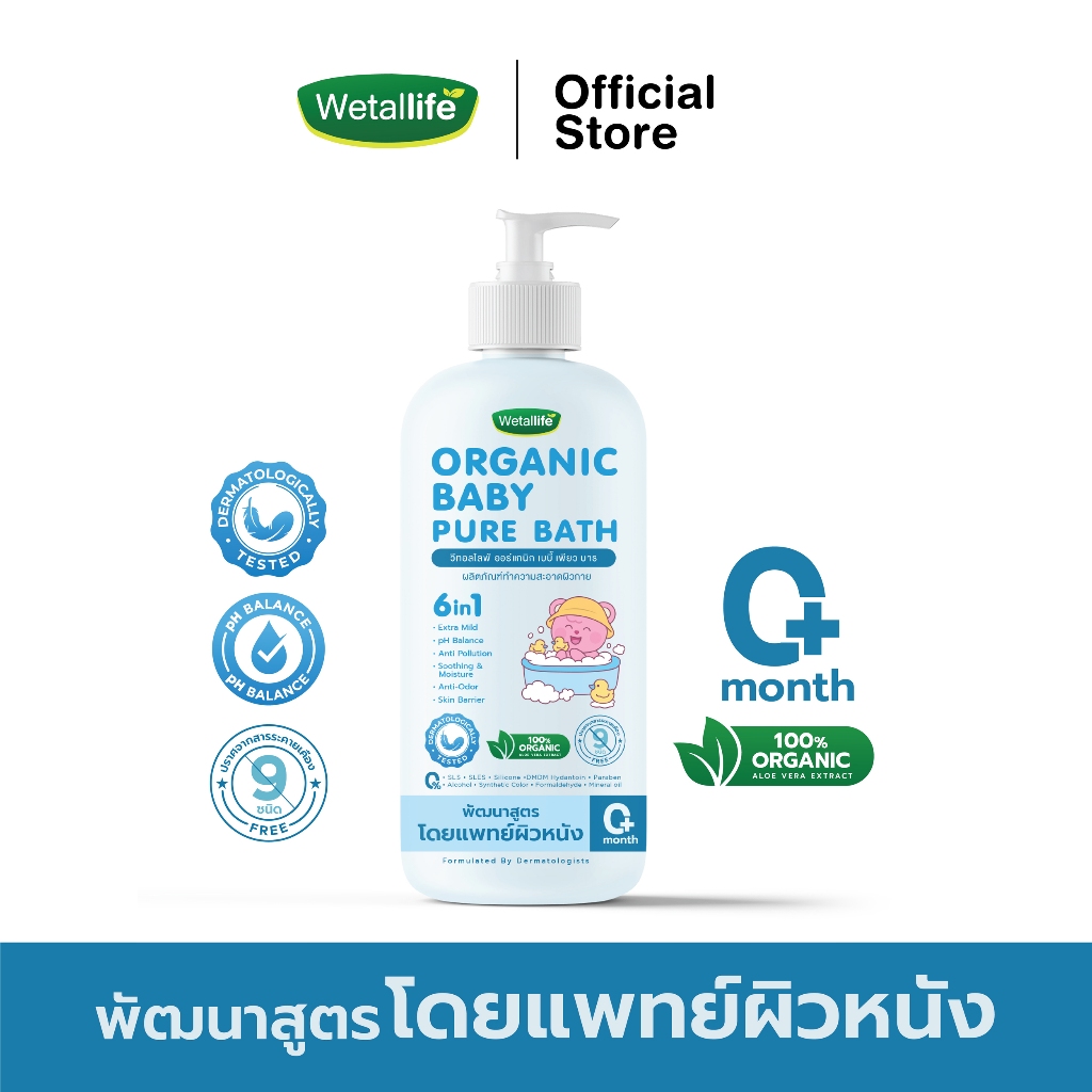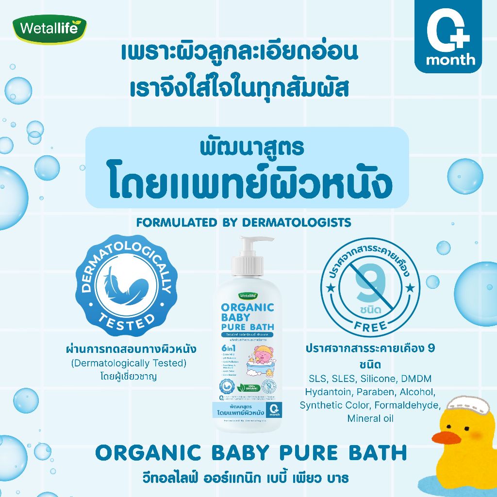 เจลอาบน้ำเด็ก วีทอลไลฟ์ ออร์แกนิก เบบี้ เพียว บาธ พัฒนาสูตรโดยแพทย์ผิวหนัง ผ่านการทดสอบการระคายเคือง