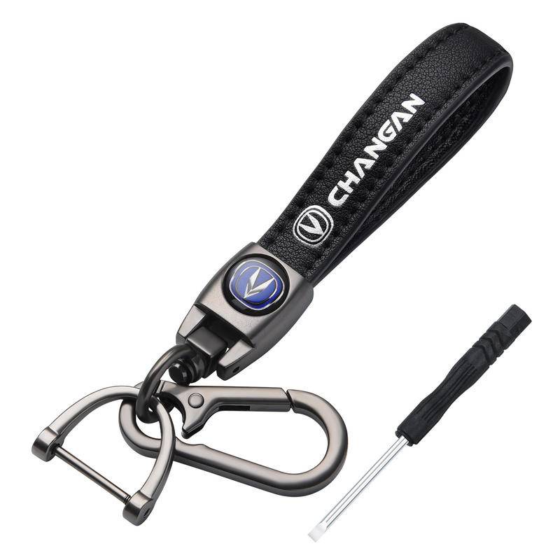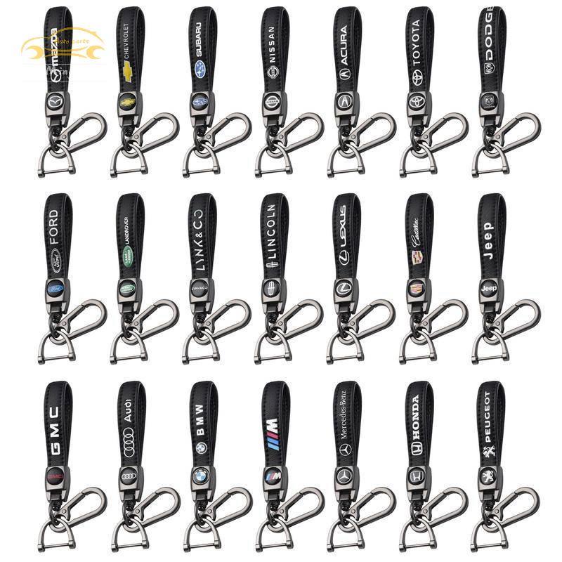Creative men's high-end waist hanging car logo Keychain Car leather rope key ring Vachette clasp Ready stock