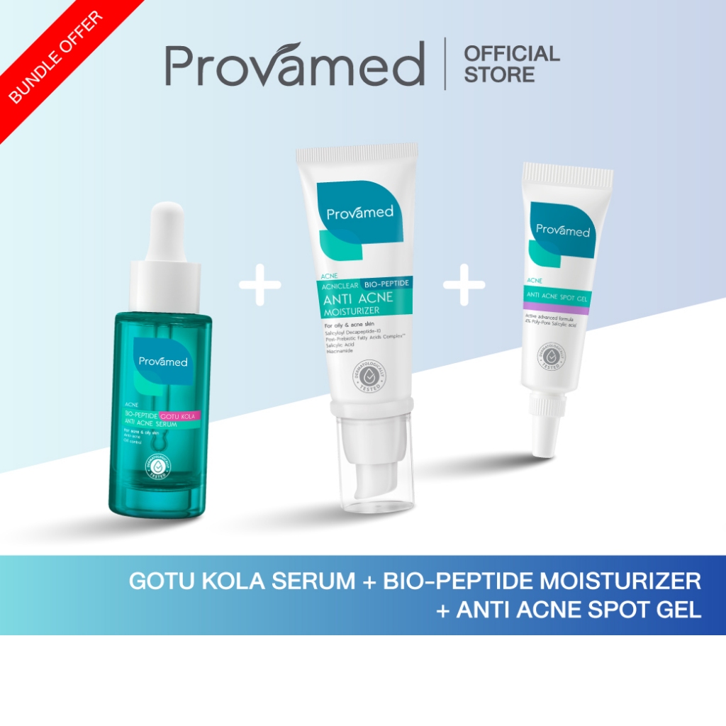 [SET] PROVAMED GOTU KOLA SERUM 30 ML, BIO-PEPTIDE MOISTURIZER 40 ML, ANTI ACNE SPOT GEL 10 G