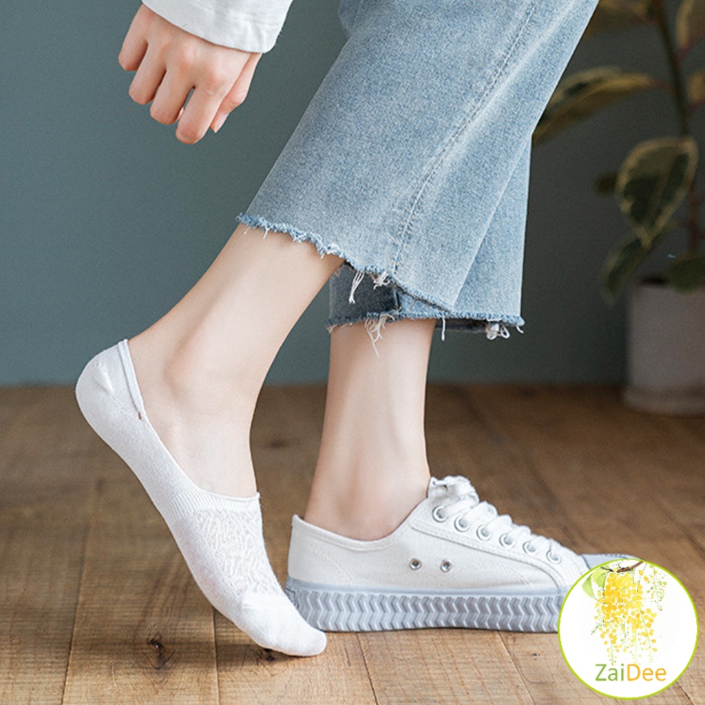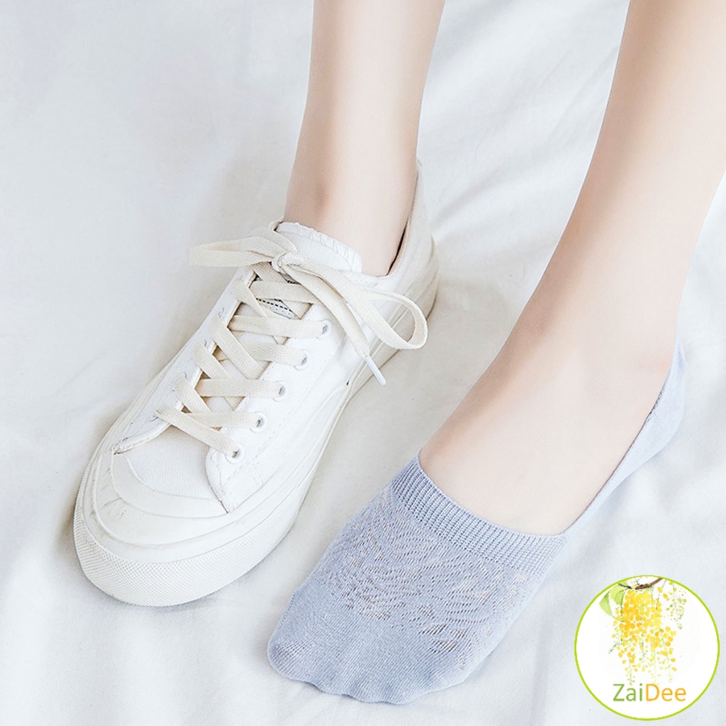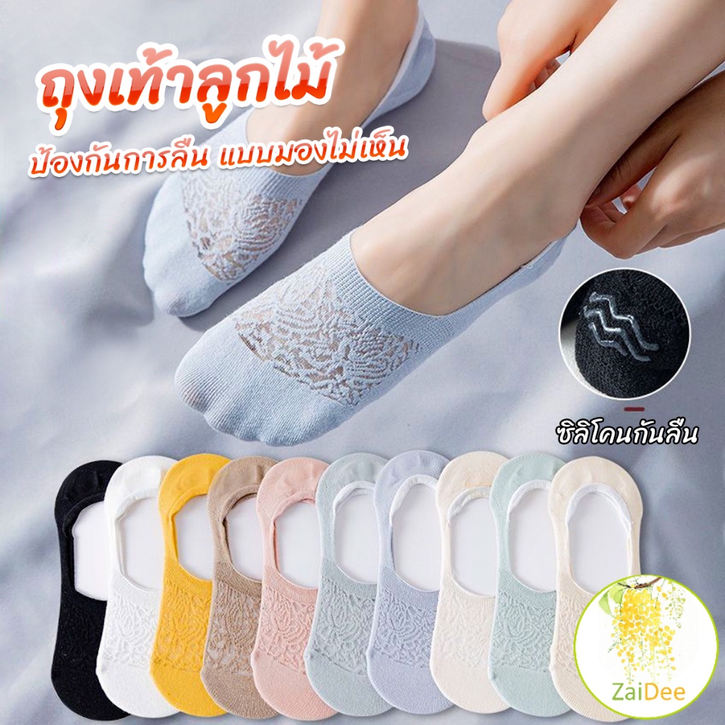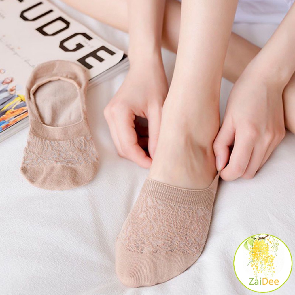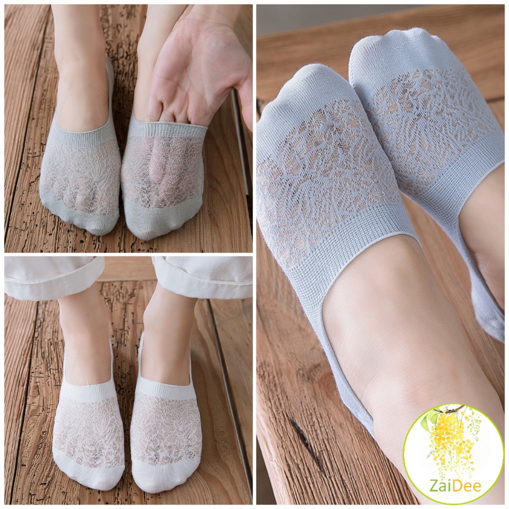 ถุงเท้าลูกไม้ ถุงเท้าผ้าฝ้าย ด้านล่างซิลิโคนกันลื่น ถุงเท้าข้อสั้น Lace socks