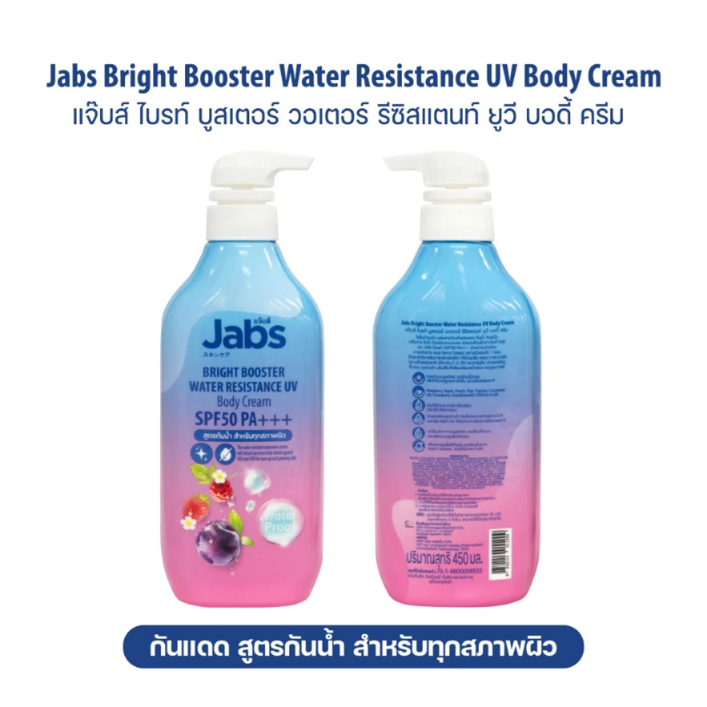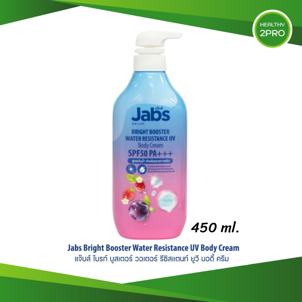 Jabs กันแดดสูตรกันน้ำ โลชั่นกันแดดกันน้ำ กันเหงื่อ ไบรท์บูสเตอร์ SPF50 PA+++ ขนาด 450ml.