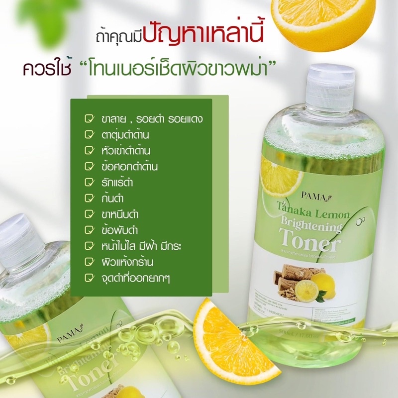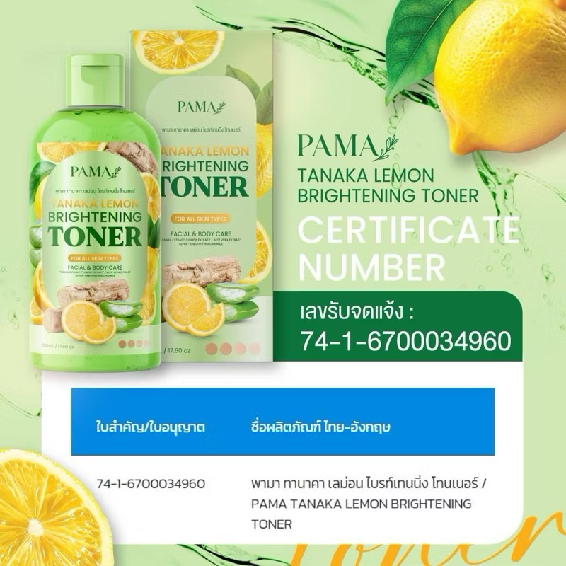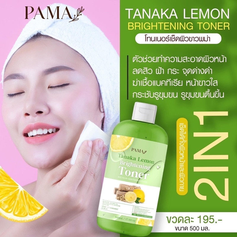 แพคเก็ตใหม่ล่าสุด ส่งฟรี ขายดี โทนเนอร์เช็ดผิวขาวพม่าทานาคา สูตรเลมอน : Pama Tanaka Lemon Brightening Toner