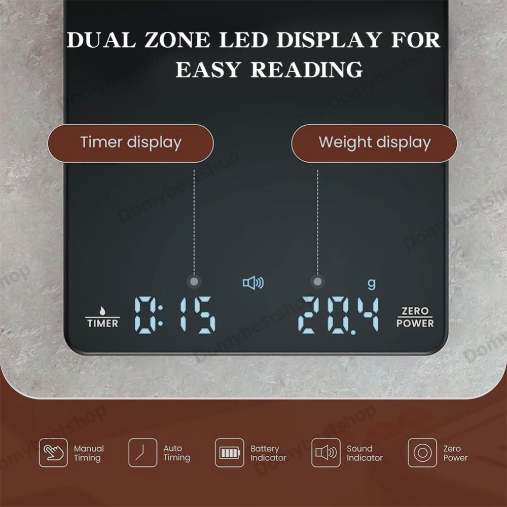 COD เครื่องชั่งกาแฟขนาดเล็กพร้อมตัวจับเวลาแบบชาร์จได้ 3 กก./0.1 กรัม เครื่องชั่งเอสเปรสโซ Auto Tare LCD