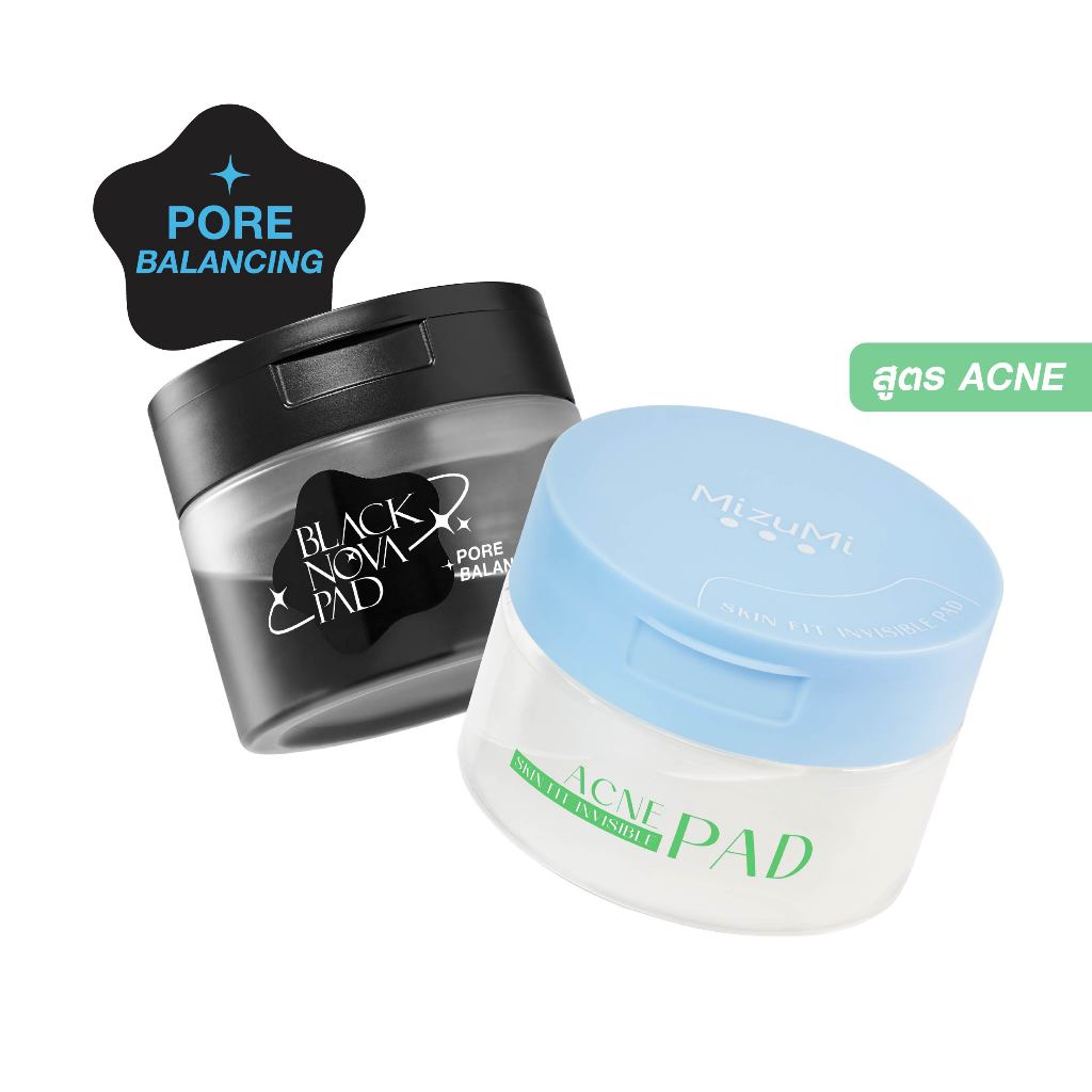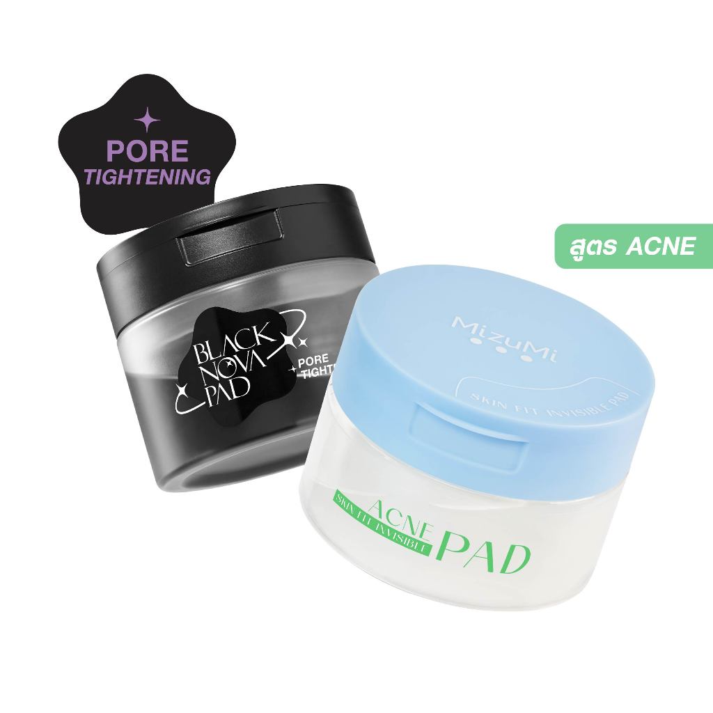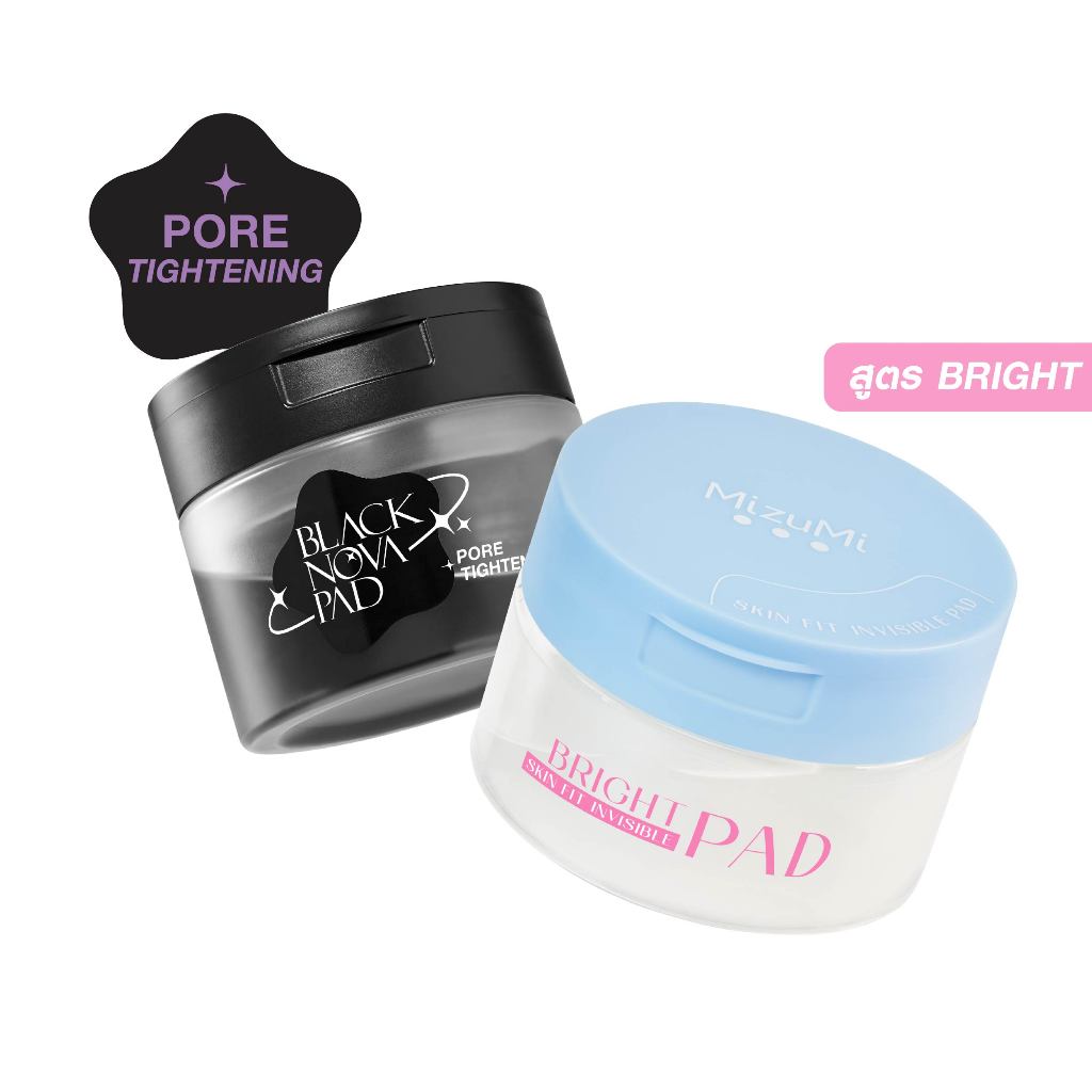 [แพ็คคู่ SET DUO] MizuMi Black Nova Pad Pore + Skin Fit Invisible Pad(80แผ่น x 2กระปุก) โทนเนอร์แพด เคลียร์รูขุมขนล้ำลึก