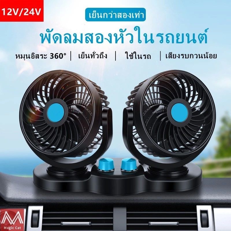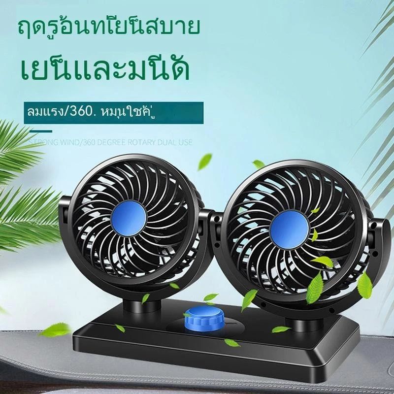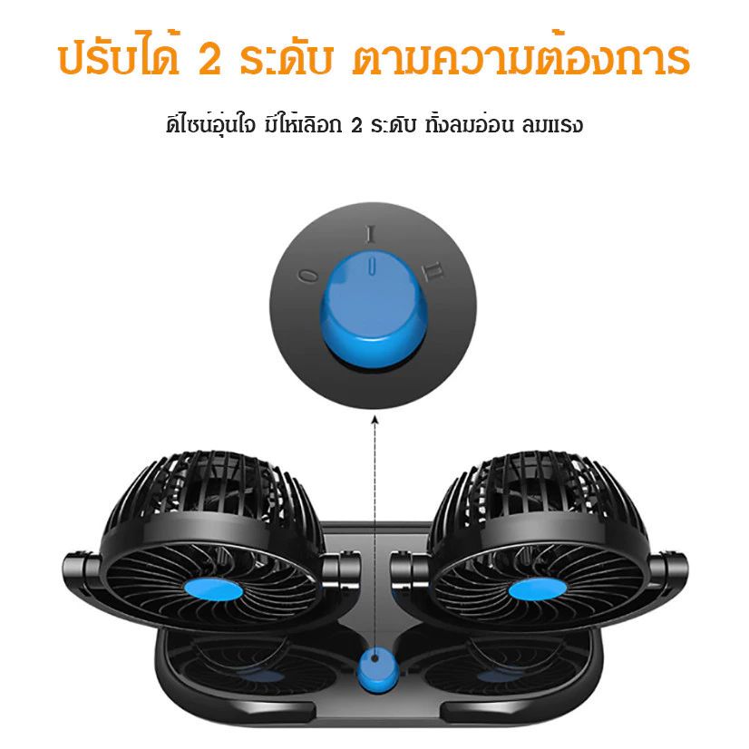 พัดลมติดรถยนต์ 12V ลมแรง หมุนได้ 360 องศา ปรับความเร็วลมได้ 2 ระดับ เสียบช่องจุดบุหรี่