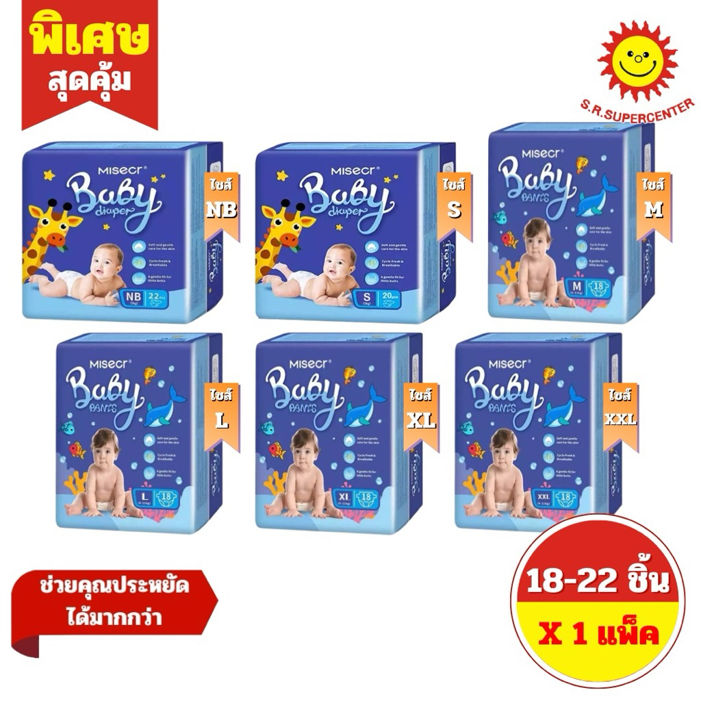 [ 1 แพ็ค ] MISECR มิสเซอร์ ผ้าอ้อมเด็กสำหรับเด็กชายและเด็กหญิง ผ้าอ้อมระบายอากาศได้ดีและสวมใส่สบาย ขนาด NB-XXL